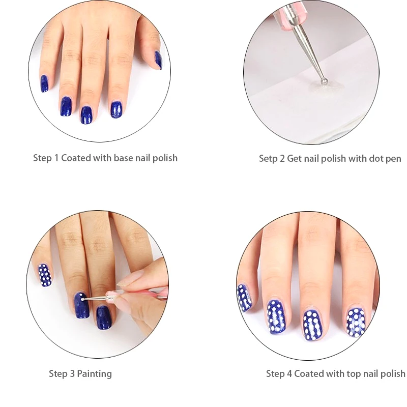 О продуктах: Название продукта: ручка для точечных ногтей Материал ручки: акрил или дерево Цвет: 8 комплектов разных цветов на выбор Количество: 5 шт./компл. Размер: длина около 13,0 см Посылка 5 шт. * инструменты для рисования ногтей (отправляйте по вашему выбору) Особенности: 100% новое поступление и высокое качество. 5 шт., акриловая ручка для дизайна ногтей с 2 разными концами для разных желаний. Один конец с большим шаром, а другой конец с меньшим, прямые и угловые точечные шарики для любых условий работы. Идеально подходит для рисования точек и цветочных узоров. Его также можно использовать для создания точек (ровного или уменьшающегося размера) и для создания точек в форме лепестков при мелко детализированных цветах. Может использоваться на натуральных, накладных и акриловых ногтях. Отлично подходит как для профессионального специалиста по маникюру, так и для работы с нейл-артом.