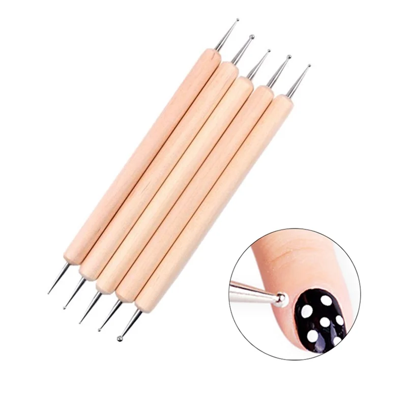 5 шт.компл. точечные инструменты для дизайна ногтей, акриловая ручка с двумя концами для УФ-геля, рисования, резьбы, лайнера, кисти для полировки, подбора бисера