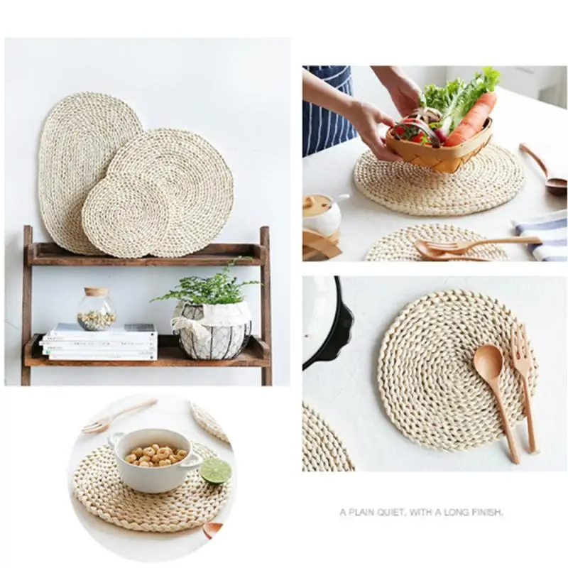 Круглая подставка из ротанга, плетеный коврик из натуральной кукурузной соломы для обеденного стола, теплоизоляционный подстаканник для кастрюль, подставки, аксессуары для кухни