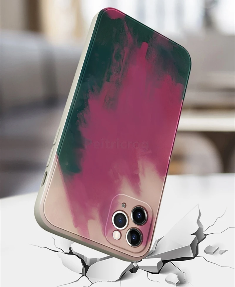 Роскошные жидкий силикон красочный чехол для iPhone 12 11 Pro X XR XS Max 8 7 Plus SE2020 12 мини акварель Мягкий защитный чехол