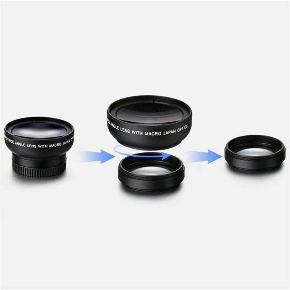 Мобильный телефон универсальный зажим Профессиональный 37 мм 0.45X 49UV супер широкий угол + макрообъектив T2- In-1