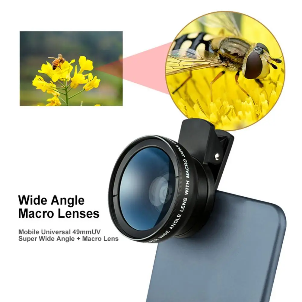 Мобильный телефон универсальный зажим Профессиональный 37-мм 0.45X 49UV супер Широкий формат + макро T2-в-1 телефонных объективов
