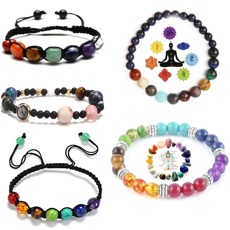 Браслет ручной работы из натурального камня 7 чакр, браслет для йоги, браслеты из камней с бусинами для женщин, лечебный браслет рейки, браслеты из бусин с нитками для мужчин