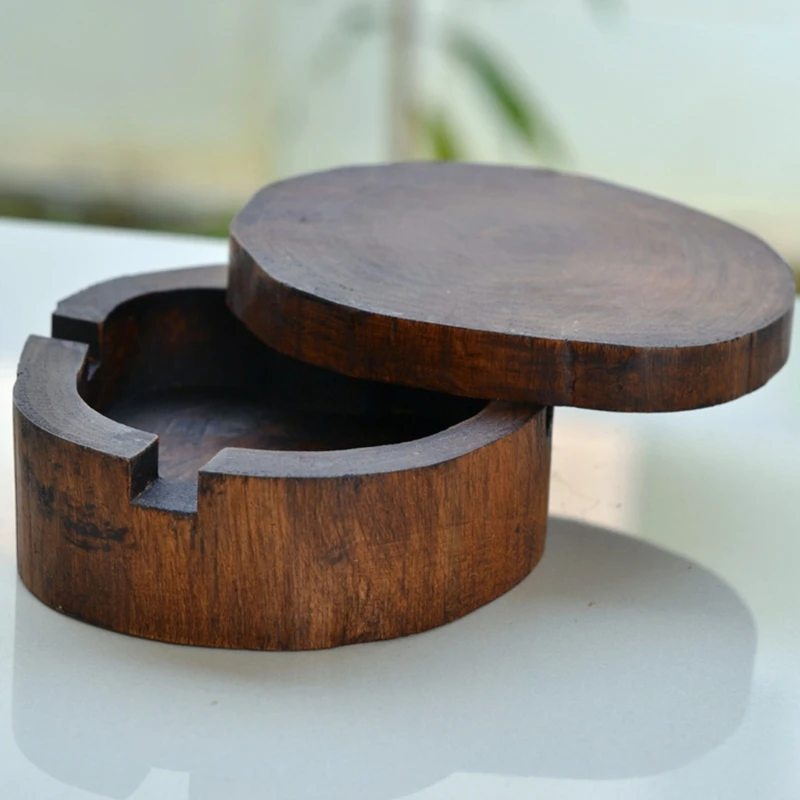 13ма винтажная натуральная резьба по дереву пепельница со съемной крышкой простой дизайн украшения