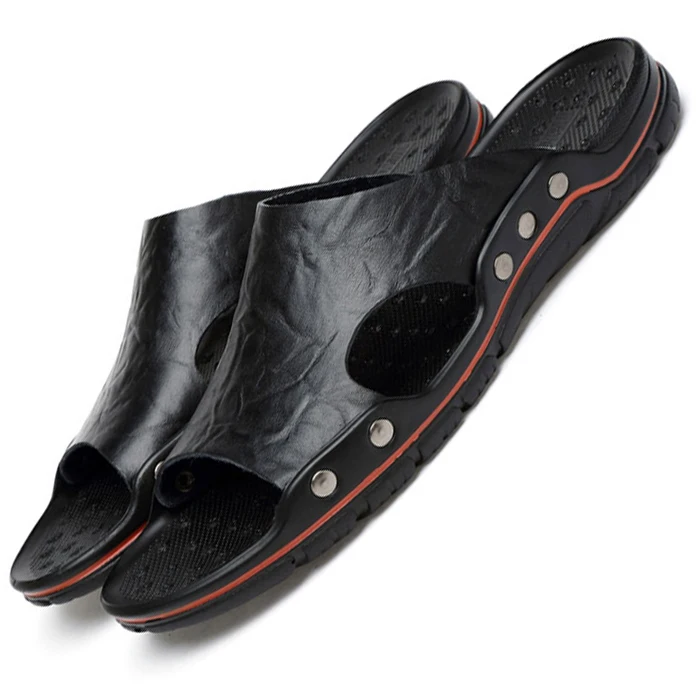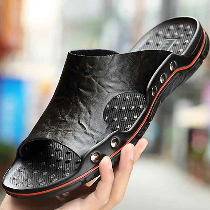 Genuine Leather Breathable SlippersSummer dress,Summer mens shoes,leather loafers
