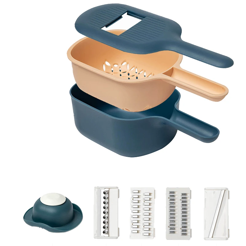 Овощерезка из нержавеющей стали, кухонный инструмент из ПП, для нарезки картофеля, моркови, сыра, темно-синего цвета