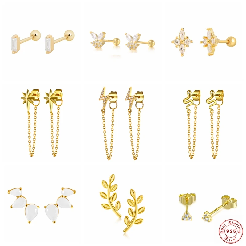 S925 браслеты бабочки из серебра высшей пробы бабочка Lightning под змеиную кожу Пирсинг Серьга pendientes плата 925 цепь кисточкой серьги-гвоздики CZ изысканные украшения