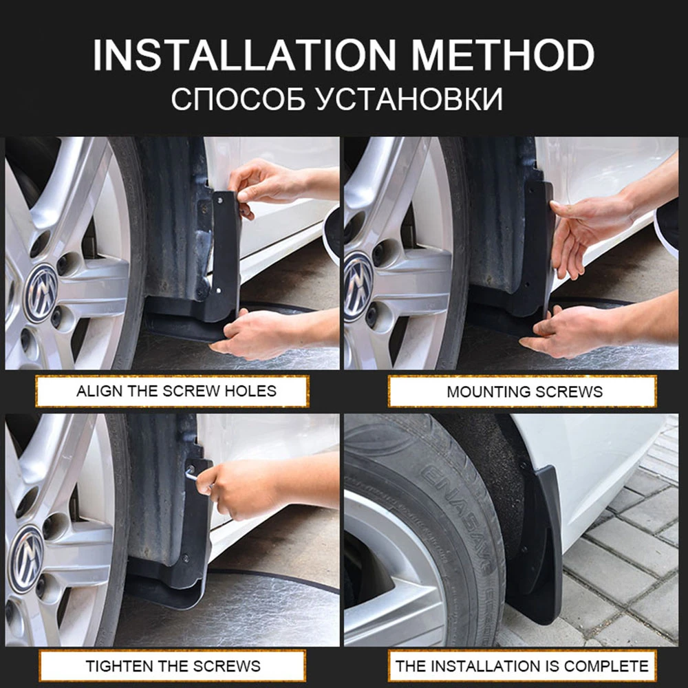 Эти износостойкие грязевые предохранители легко сочетаются с автомобилями и минимизируют риск попадания грязи, дорожных обломков и каменных сколов с передних и задних шин. Обеспечьте дополнительную защиту, улучшая спортивный внешний вид вашего автомобиля Инструкции по установке: 1. Автомобиль в нижней части оригинальных винты для автомобилей с гаечным ключом, чтобы отвинтить 2. Возьмите Брызговики, хорошее расположение, винты установлены 3. Винты установлены в соответствующем отверстии на брызговиках.