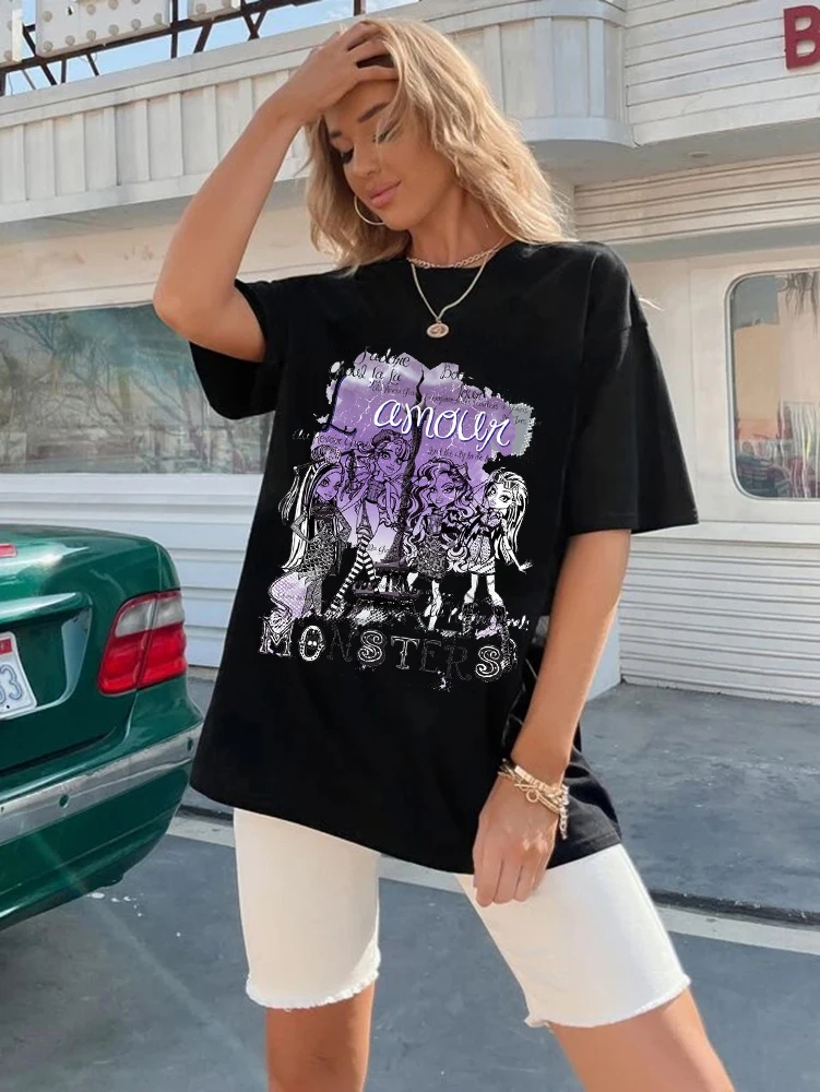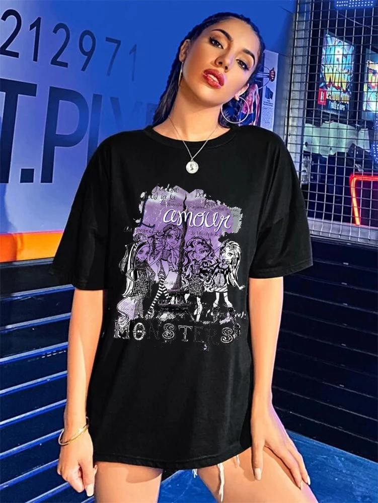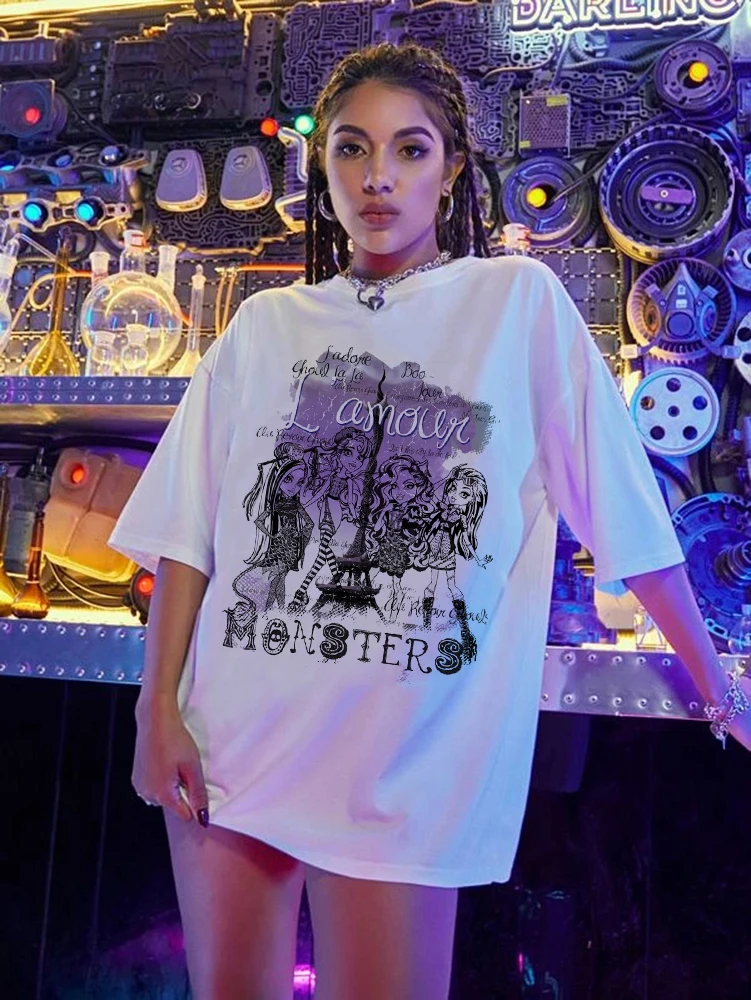Новинка 2021, женская футболка в стиле Харадзюку Y2K, топ в стиле Харадзюку, ретро, корейский стиль, одежда в стиле панк, готика, аниме с принтом монстров