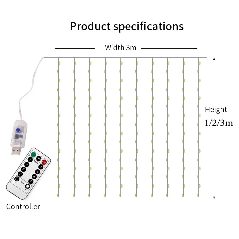 СВЕТОДИОДНАЯ Гирлянда-занавес с дистанционным управлением, 3 м