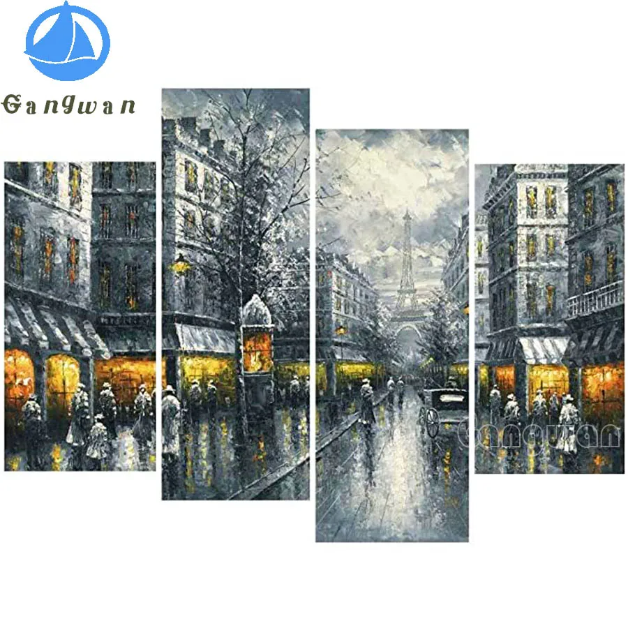 Новинка, алмазная вышивка, Париж, улица, большой 4 панели, черный и белый цвет, европейская архитектура, 5d алмазная картина, полный квадратный алмаз