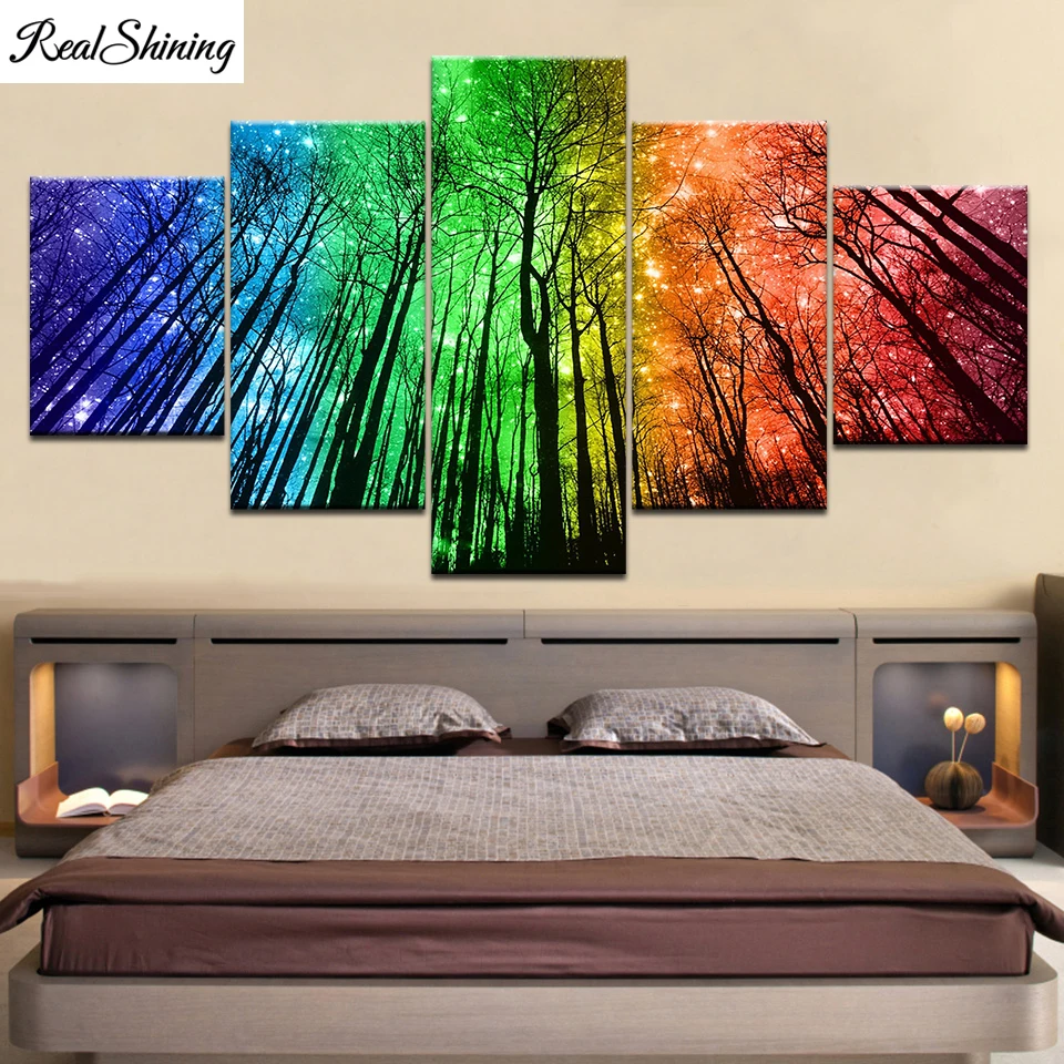 5 панельных алмазных картин, красочные деревья, пейзаж, Ночной пейзаж, 5d сделай сам, ручная вышивка, полная квадратная круглая дрель, Декор, искусство, T187
