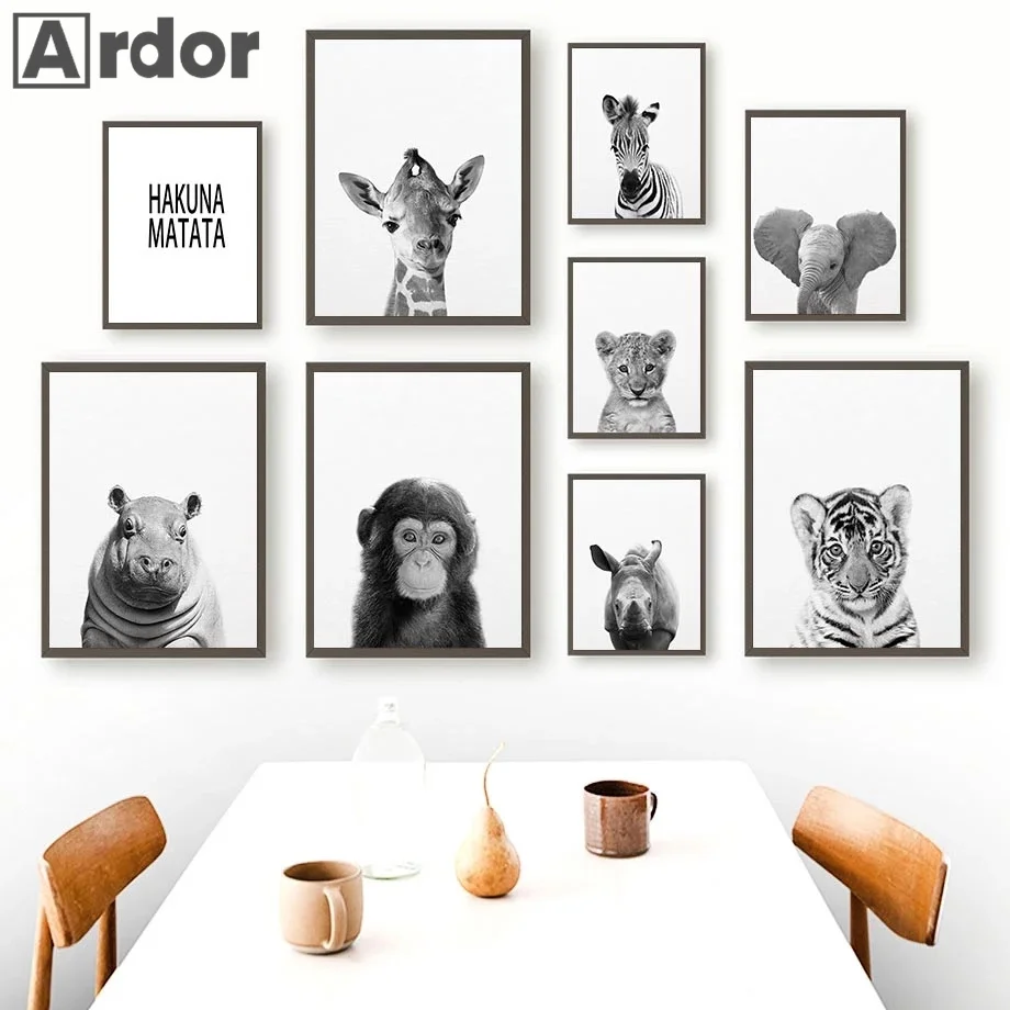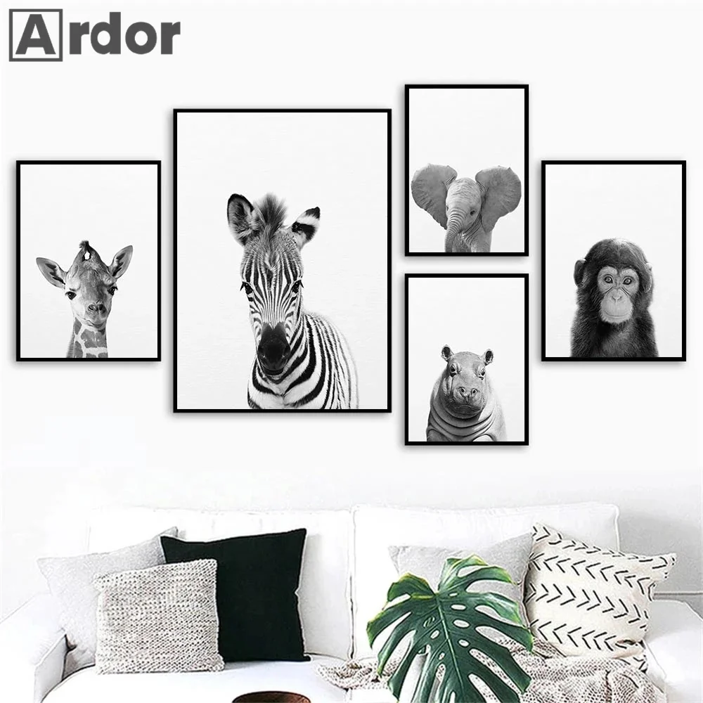 Детский постер-Зебра, олень, обезьяна, искусственная кожа, детская Картина на холсте, декор детской комнаты в скандинавском стиле