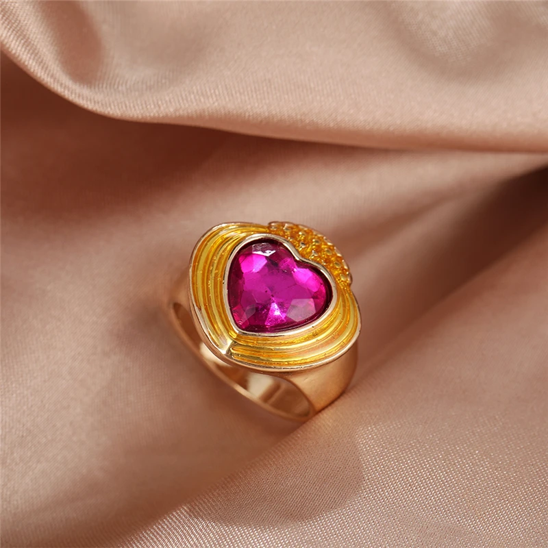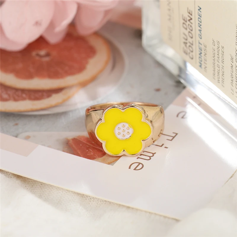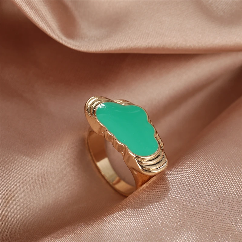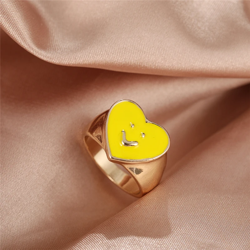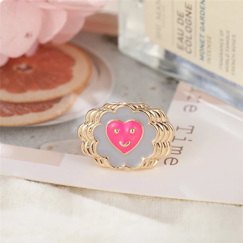 17 км в винтажном стиле с геометрическим принтом цветных улыбок колец в форме сердца из эмалевых кольцо для женщин модные Облака цветок Серебряная цепочка кольца, подарок, ювелирное изделие