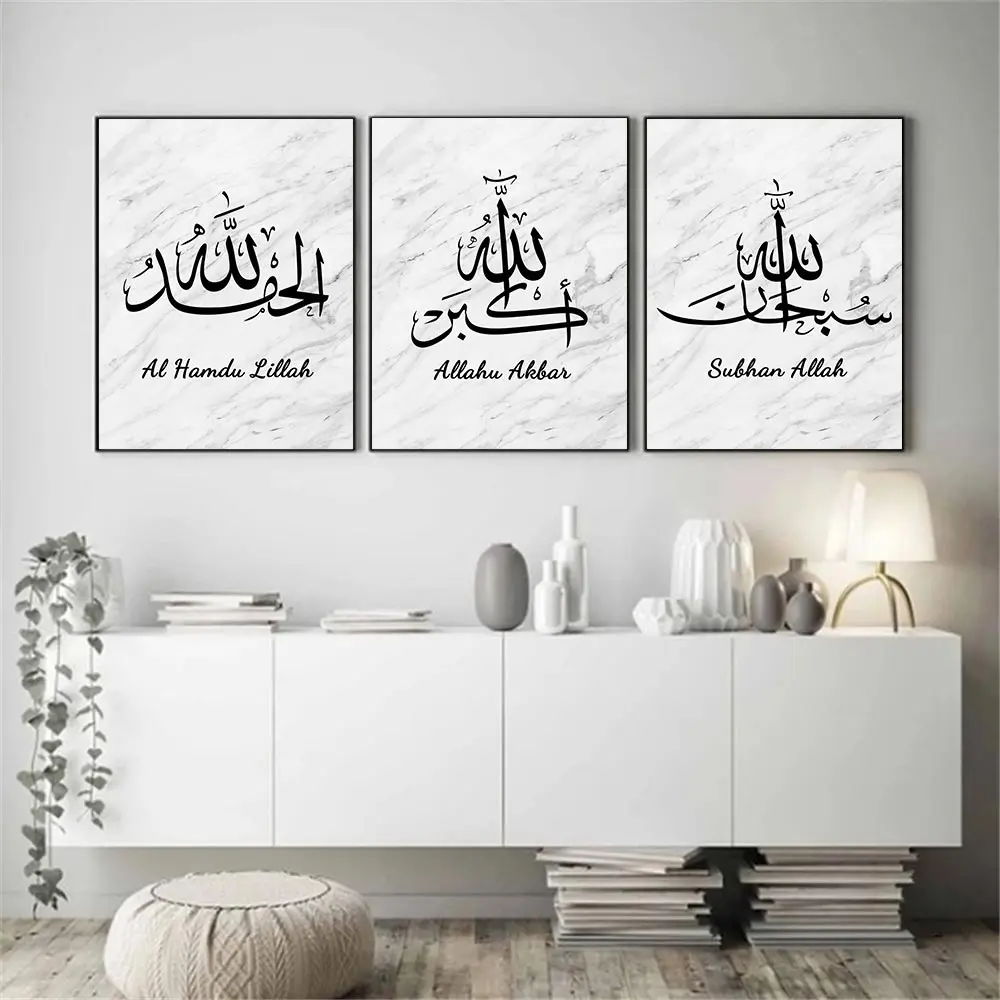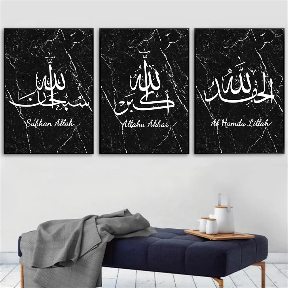 Мусульманская каллиграфия Аллах Бисмиллах мраморная Настенная картина на холсте плакат черные белые мусульманские цитаты современный Декор для дома