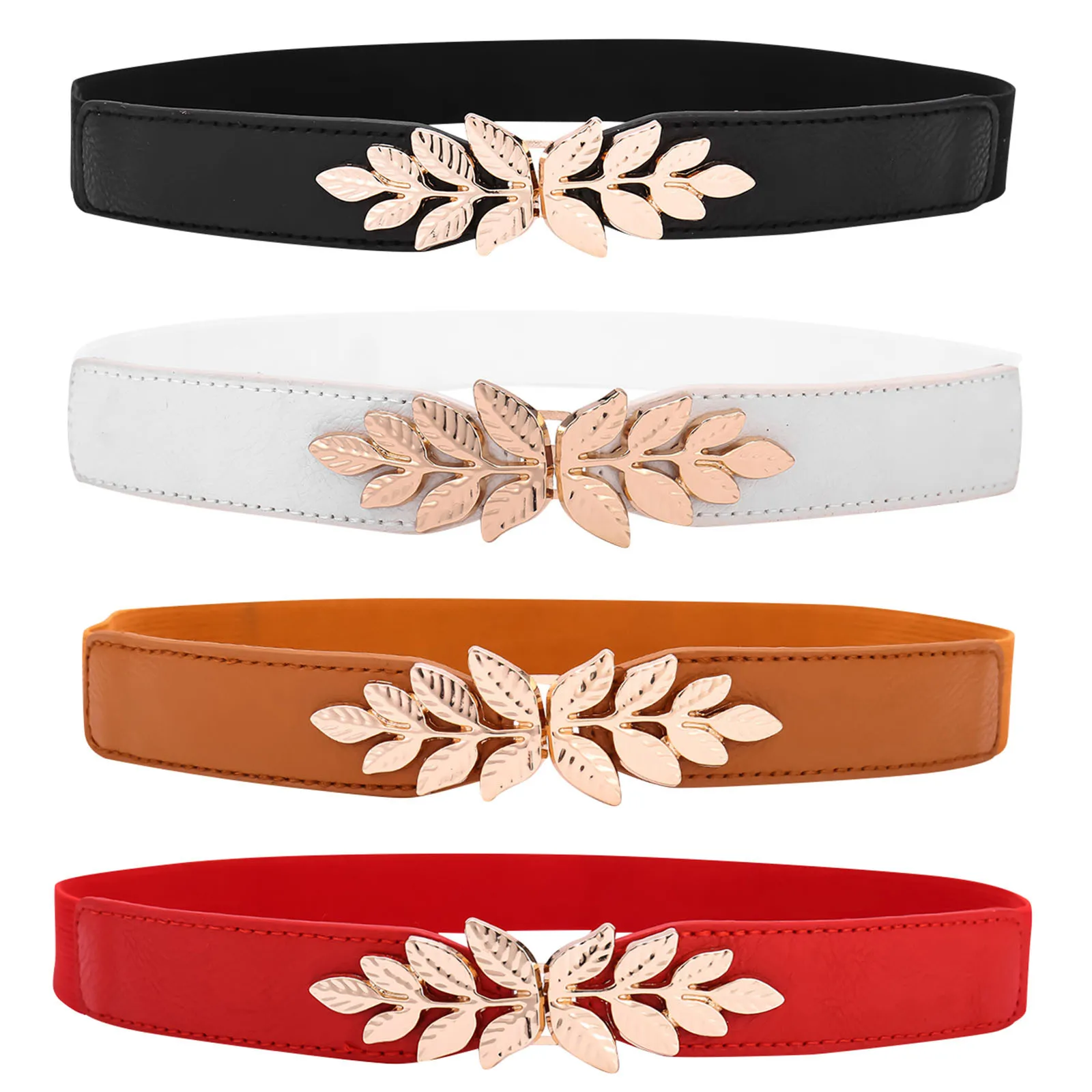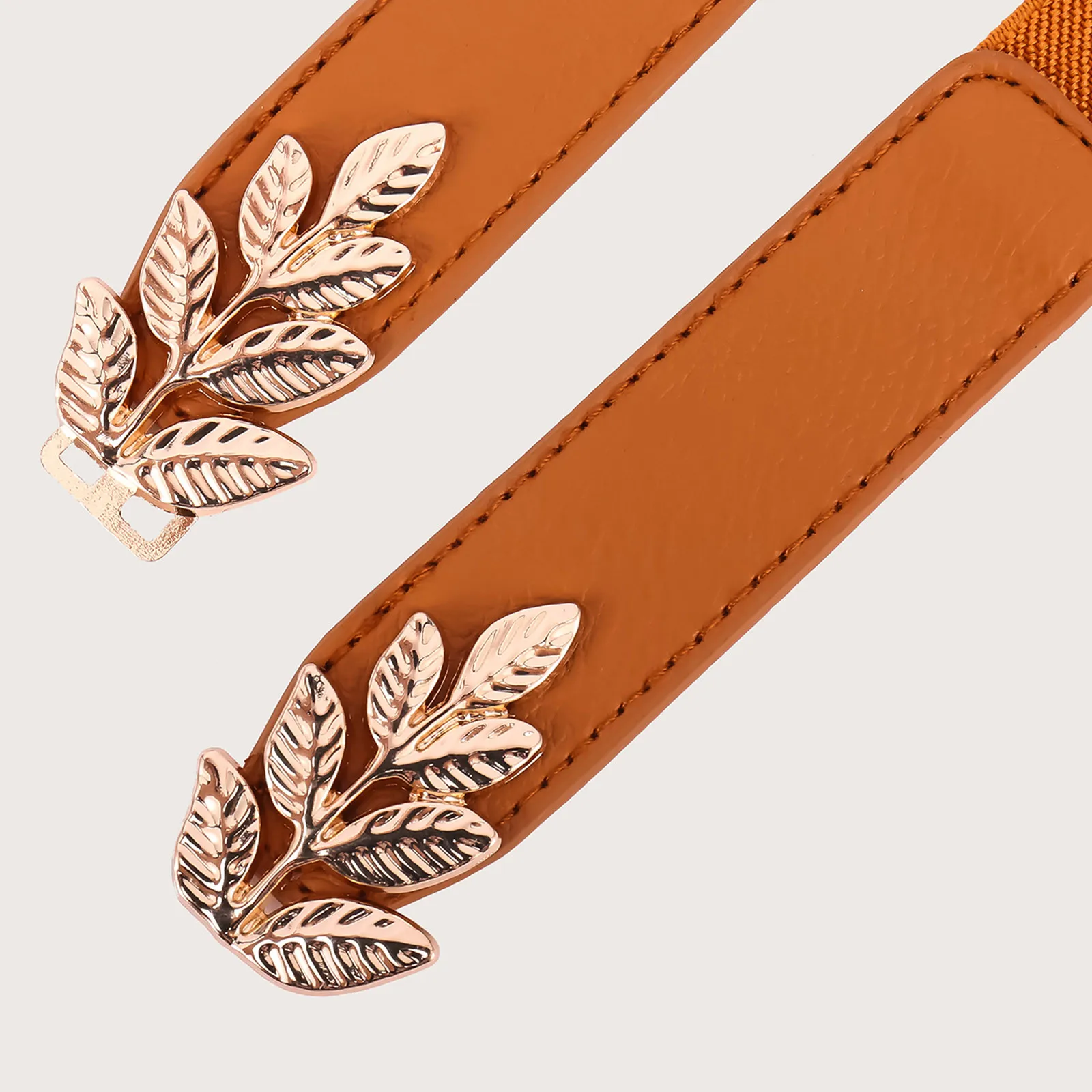 Ремень женский эластичный узкий с металлической пряжкой в виде листьев