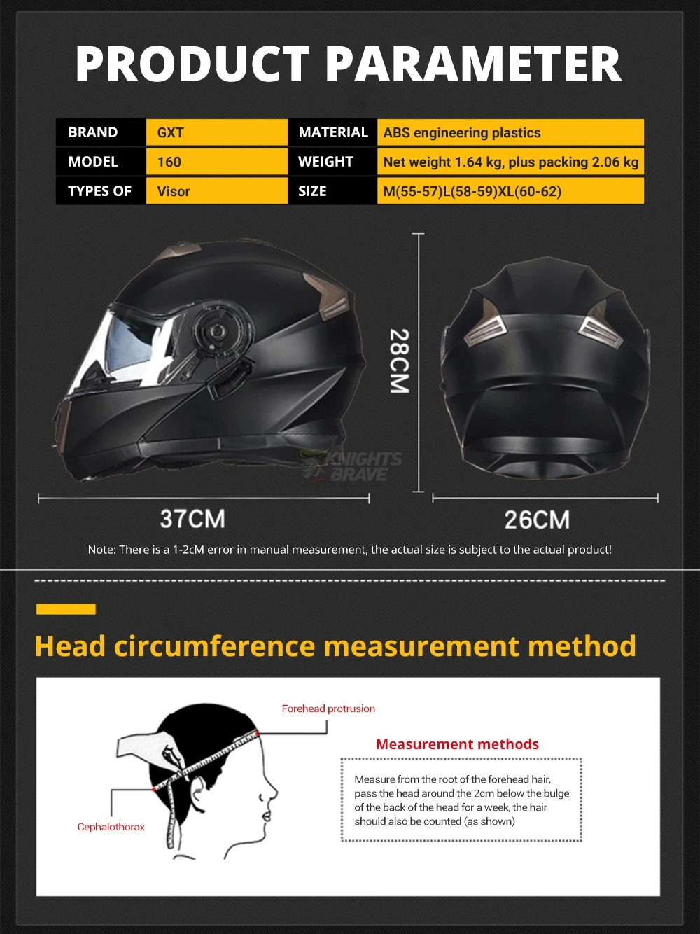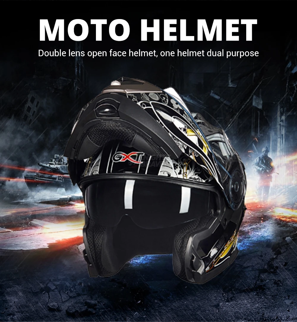 GXT Flip Up Motorcycle Bluetooth Helmet DOT Approved Dual Lens Motorbiker Motocross Helmet Men Casco Moto Capacete Casque M-2XL