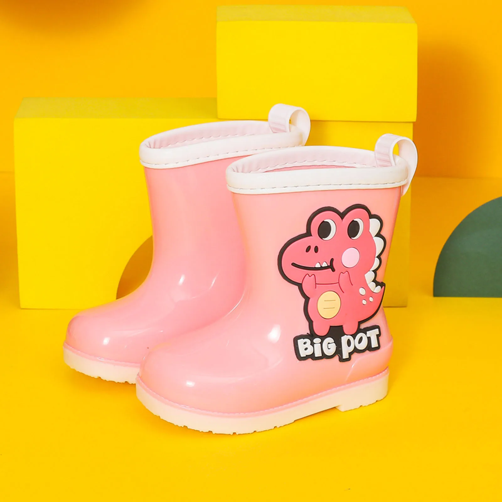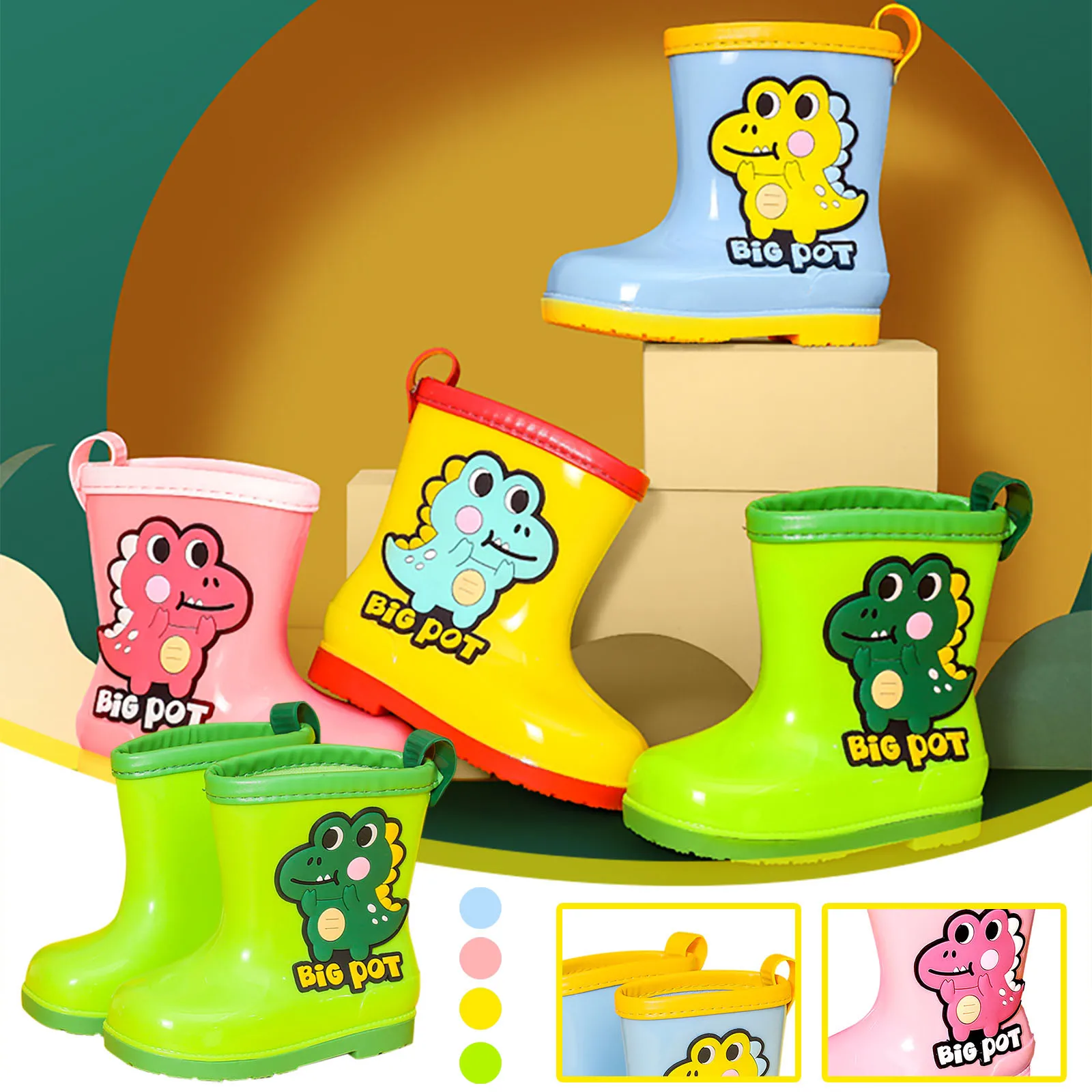 Мягкие и Нескользящие резиновые сапоги для маленьких мальчиков и девочек с рисунком динозавра
