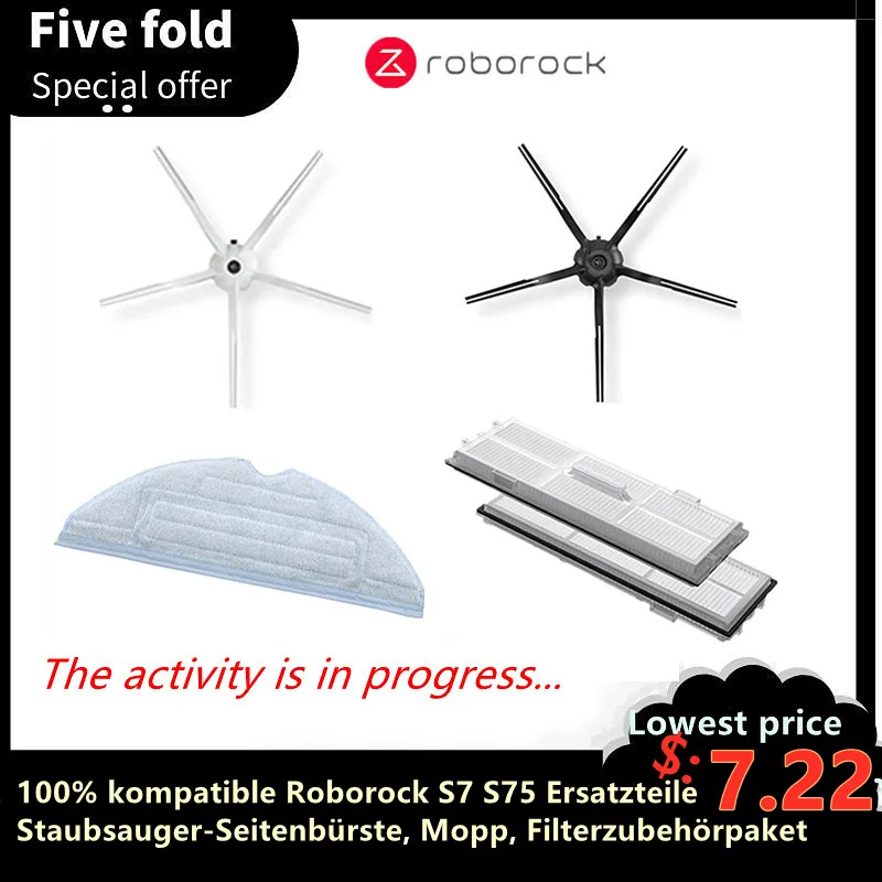 Новинка 100%, совместимая с Roborock S7 S75, боковая щетка, Швабра, фильтр, запасная часть для уборки, Швабра, аксессуары для машины пылесоса
