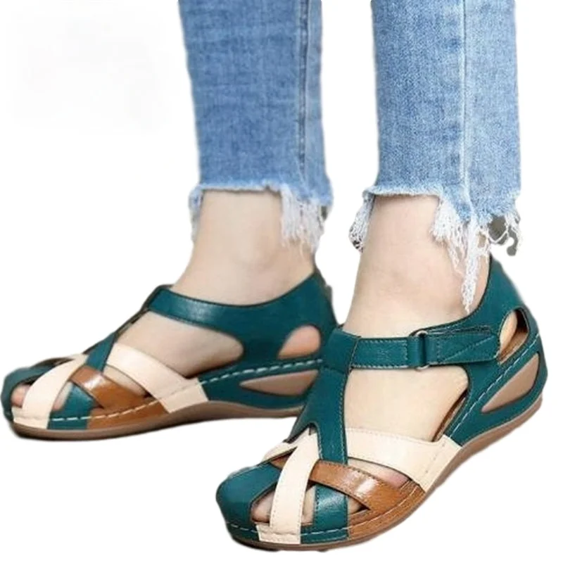 2021 новые летние женские сандалии, модные повседневные сандалии на танкетке Baotou, мужская обувь из искусственной кожи на низком каблуке в римском стиле