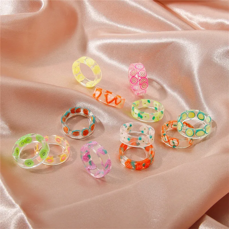 Милые летние прозрачные акриловые кольца с фруктовым узором модные ...