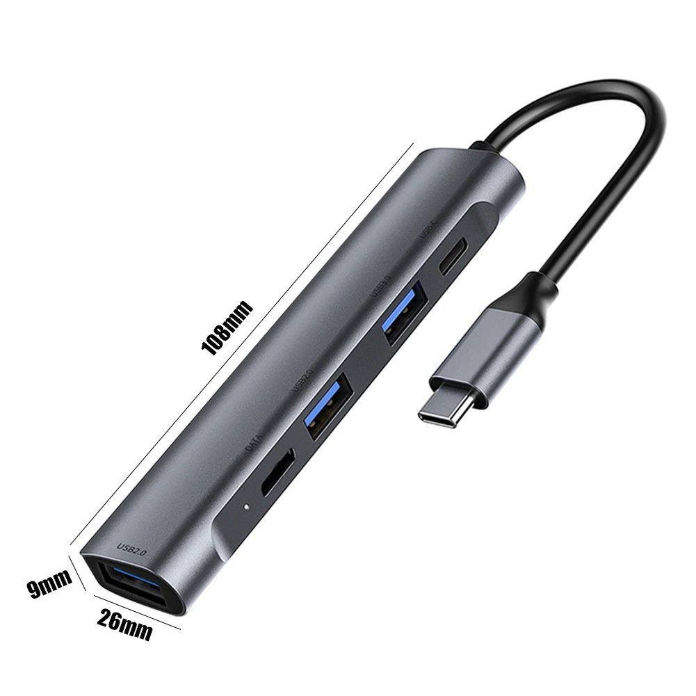 5 в одном дизайне, 2 * USB2.0 + USB3.0 + type-C data + PD быстрая зарядка, чтобы решить проблему недостаточного компьютерного интерфейса.