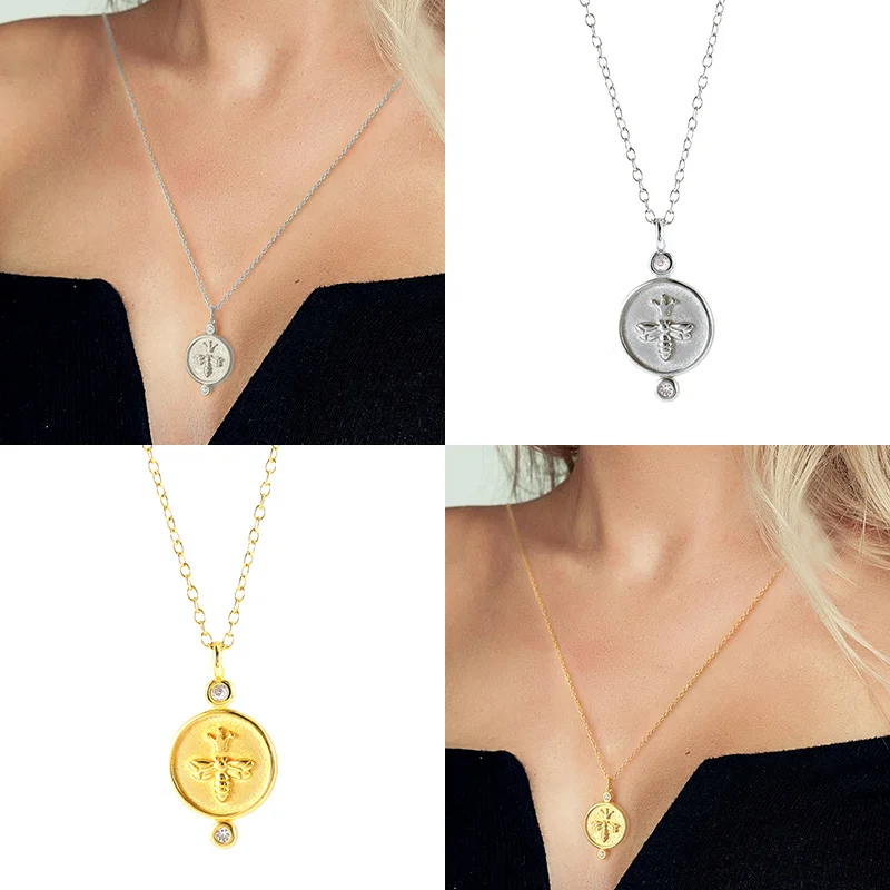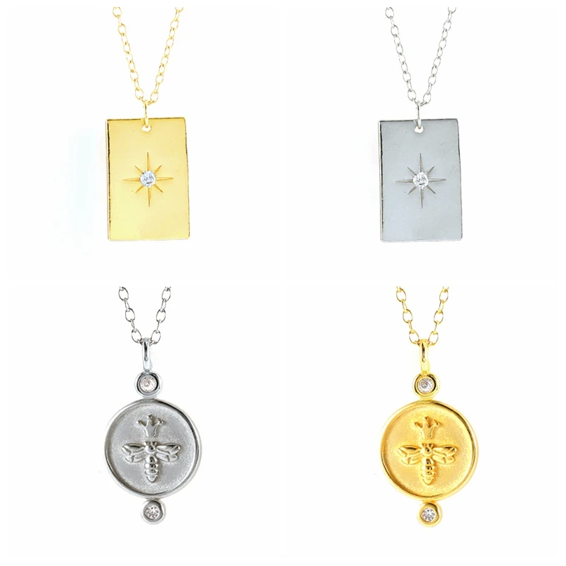 ROXI простое колье-ошейник ожерелье для женщин квадратные пчелы кулон цепь ожерелья и кулоны из нержавеющей стали ювелирные изделия с чокерами 925 стерлингового серебра