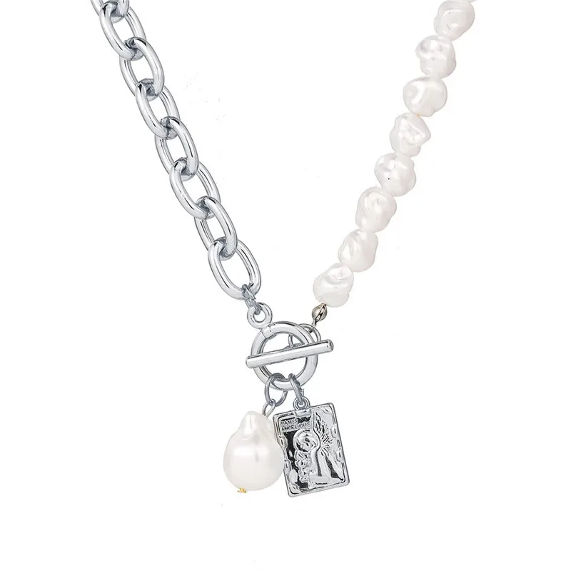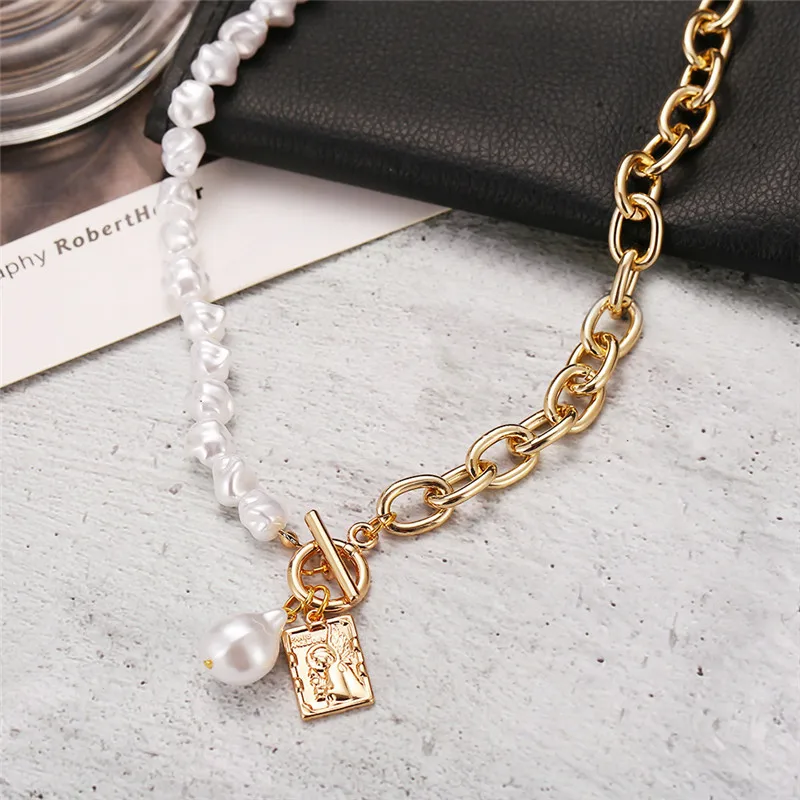 Винтажное ожерелье VAGZEB в стиле барокко, цепочка с жемчугом неправильной формы, 2022, Геометрическая подвеска Aangel, ожерелья для любви для женщин, ювелирные изделия в стиле панк