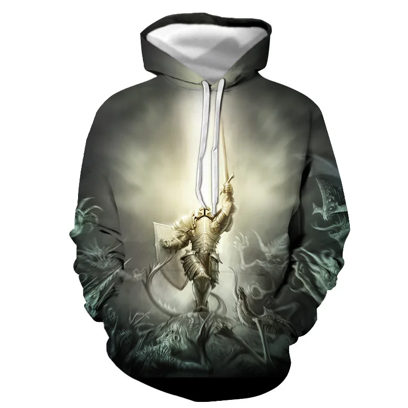 Толстовка с 3D-принтом, свитшоты, пуловер в стиле оверсайз с рисунком рыцаря, темплар, мужская толстовка с длинным рукавом, уличная одежда, повседневные Черные толстовки