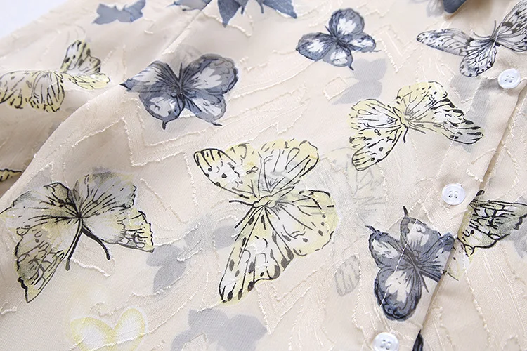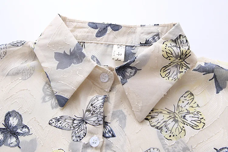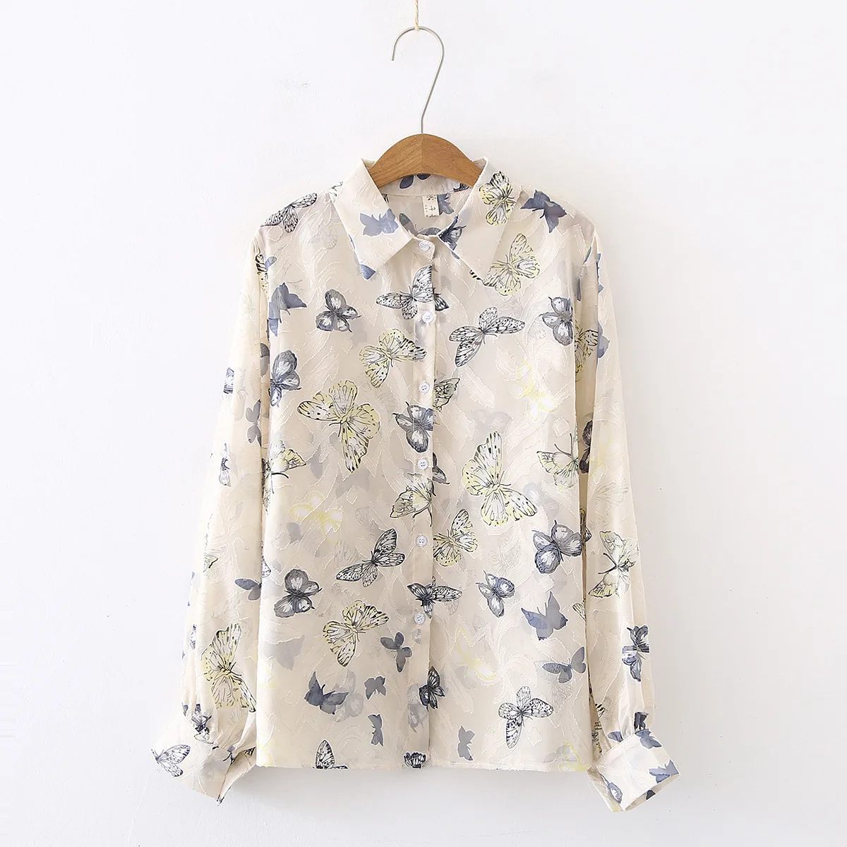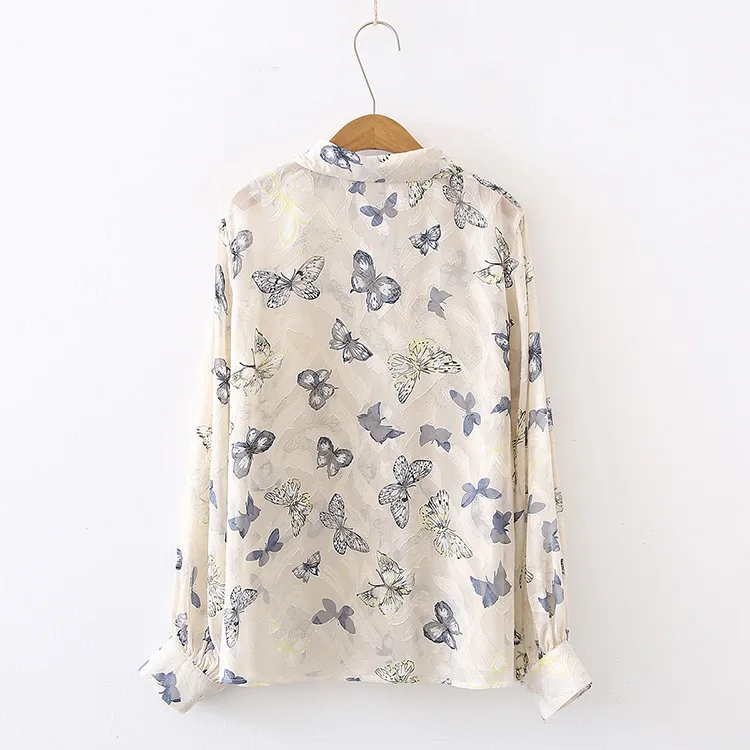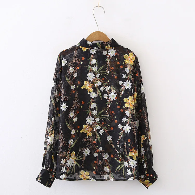 Блузка с вышивкой Новинка 2021 Модный Универсальный шифоновый топ с принтом в иностранном стиле женская рубашка с рукавами-фонариками M061