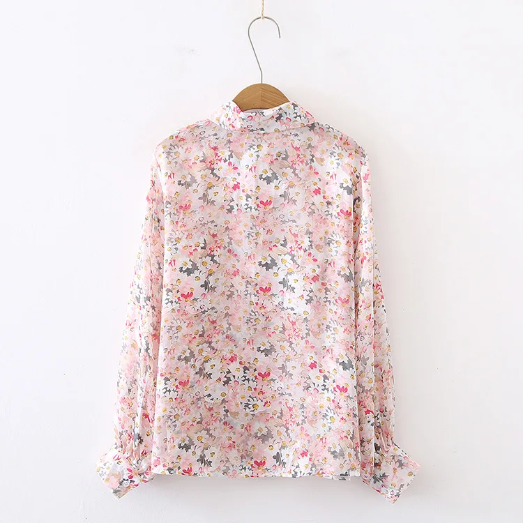 Женская шифоновая рубашка с длинным рукавом, свободная винтажная бл...