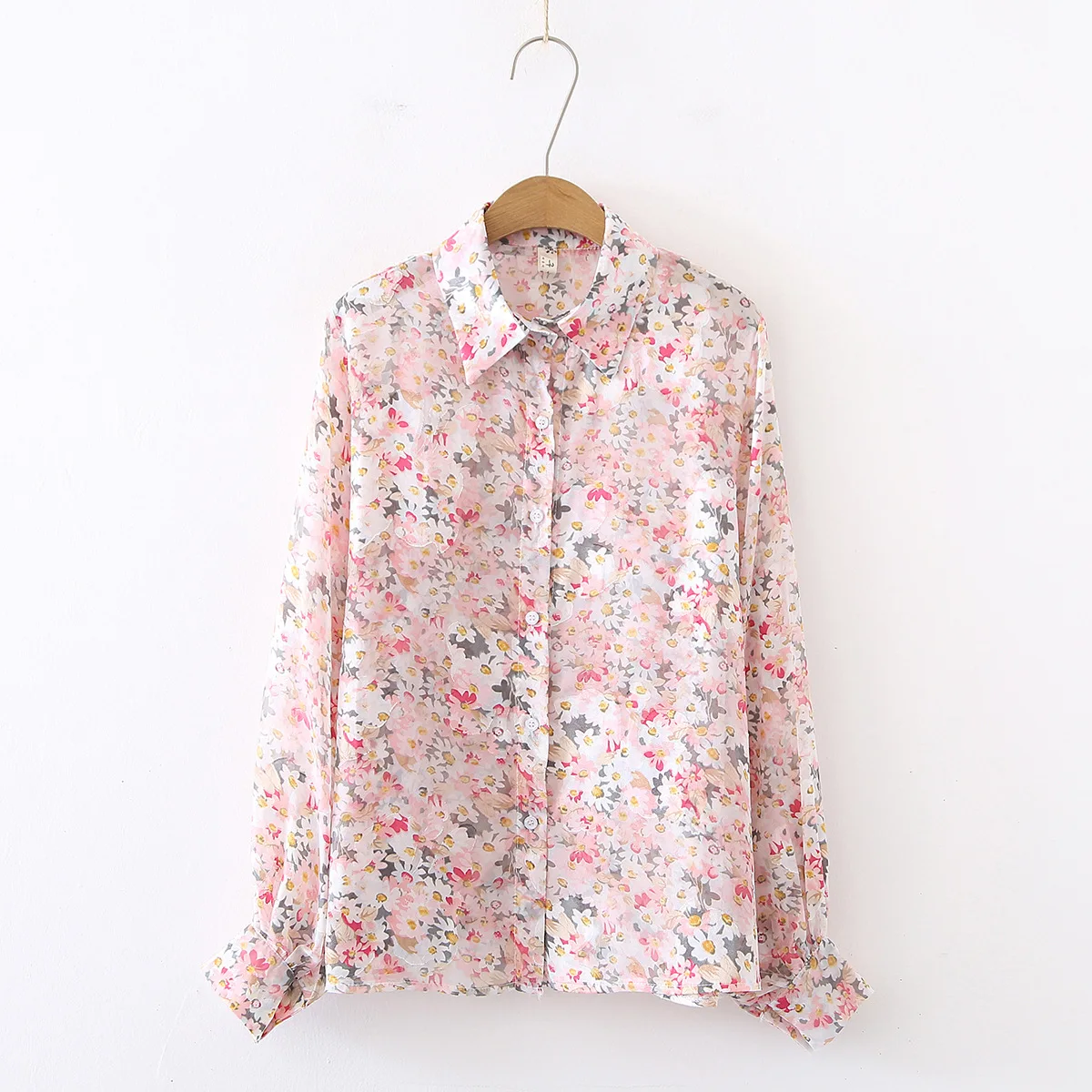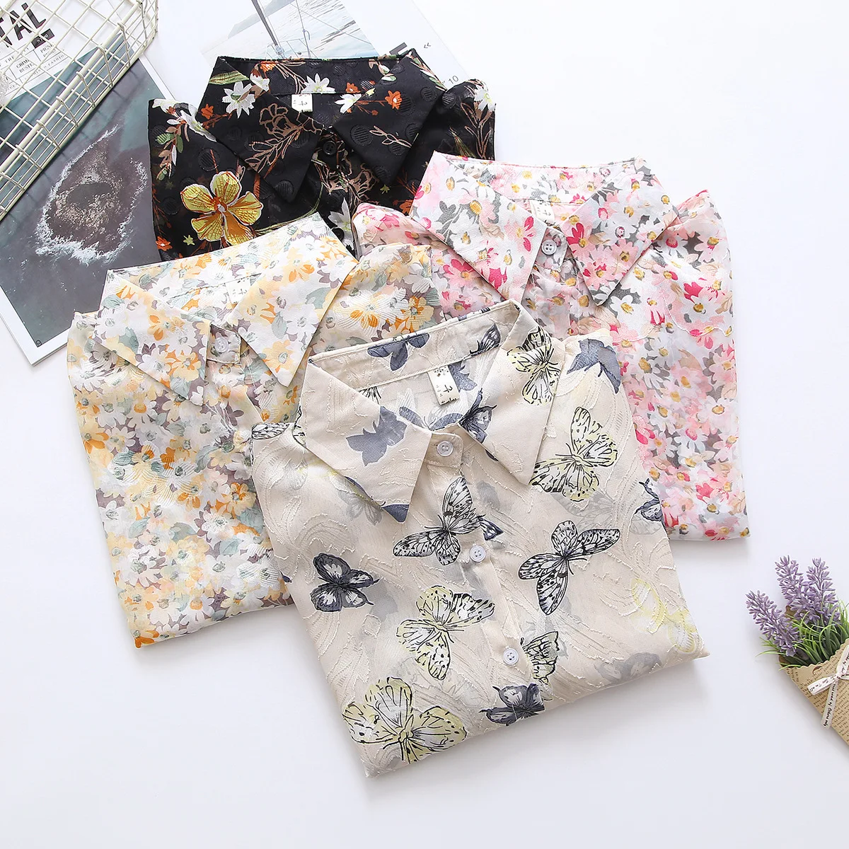 Женская шифоновая блузка на пуговицах, летняя прозрачная блузка с ц...