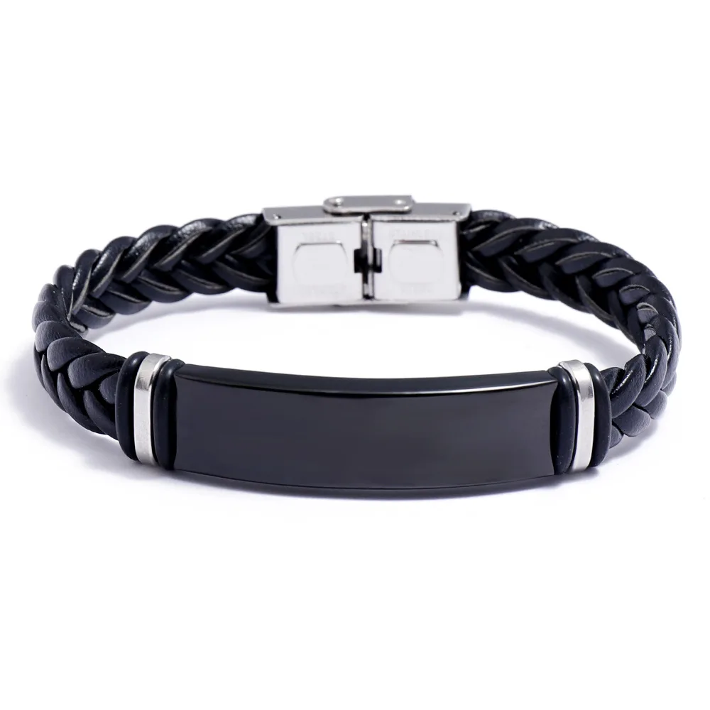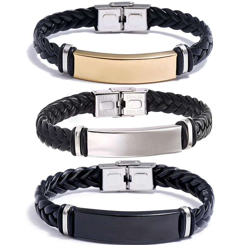 Кожаный плетеный браслет из нержавеющей стали браслет для мужчин полированный пластина Шарм браслет мужской браслет дружбы ювелирные изделия