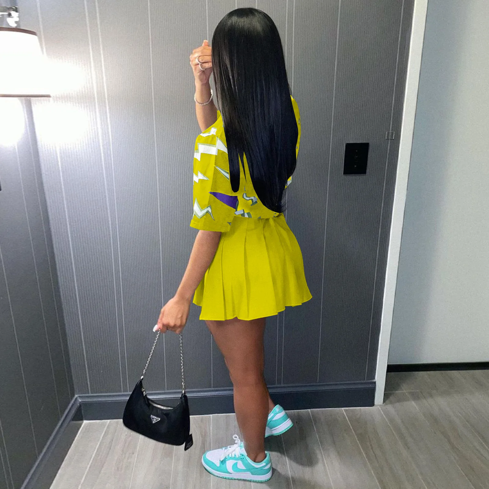 В комплекте комплект с юбкой и футболкой комплект одежды 2021 Весенняя мода темперамент новые экзотические печати Y2K короткий рукав Футболка Женская высокая юбка с тонкой талией, костюм