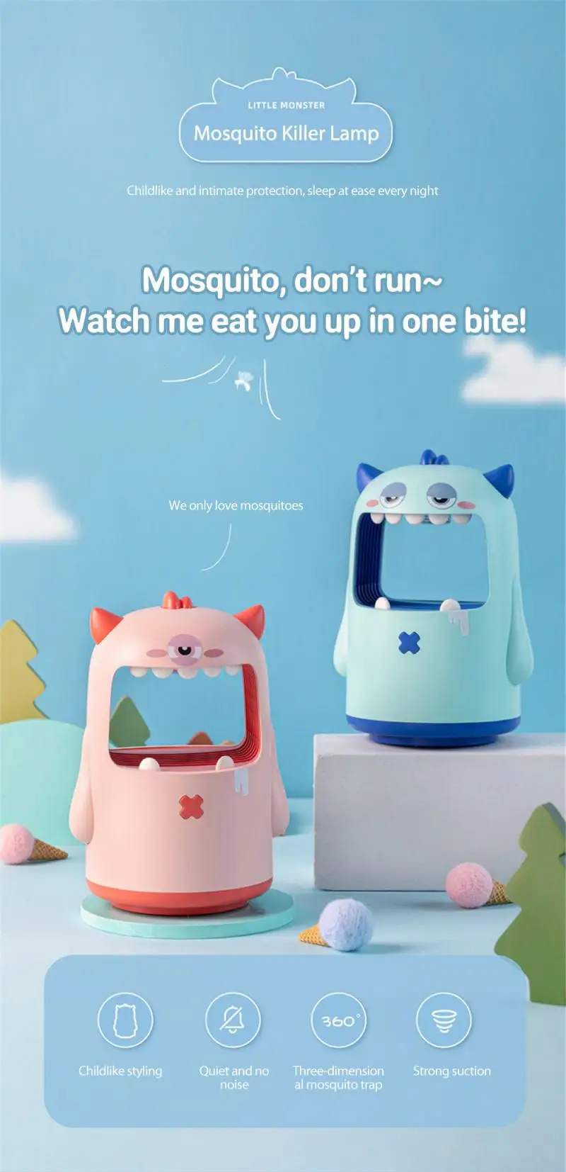 Мультяшная лампа-ловушка для комаров в детской комнате, физически Бесшумная ловушка для насекомых, репеллент от насекомых, доступно для мамы и детей