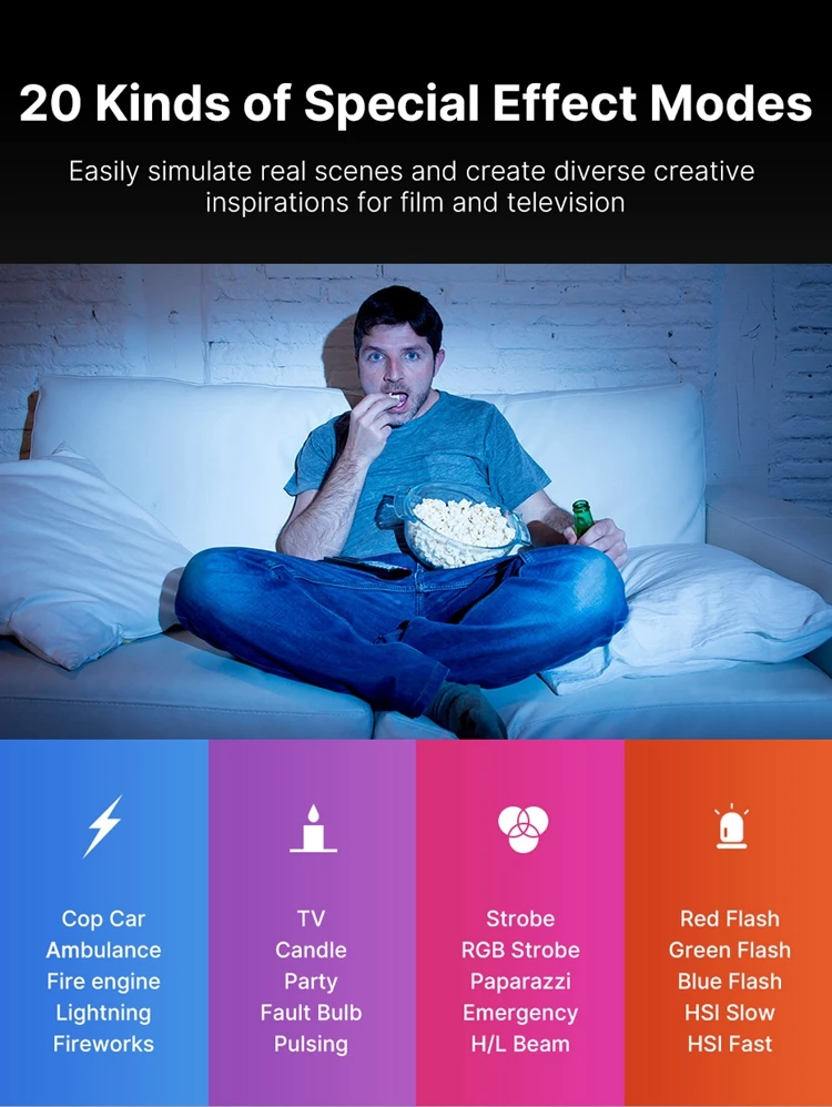 Он имеет специальный сценический эффект RGB и мягкий диффузор