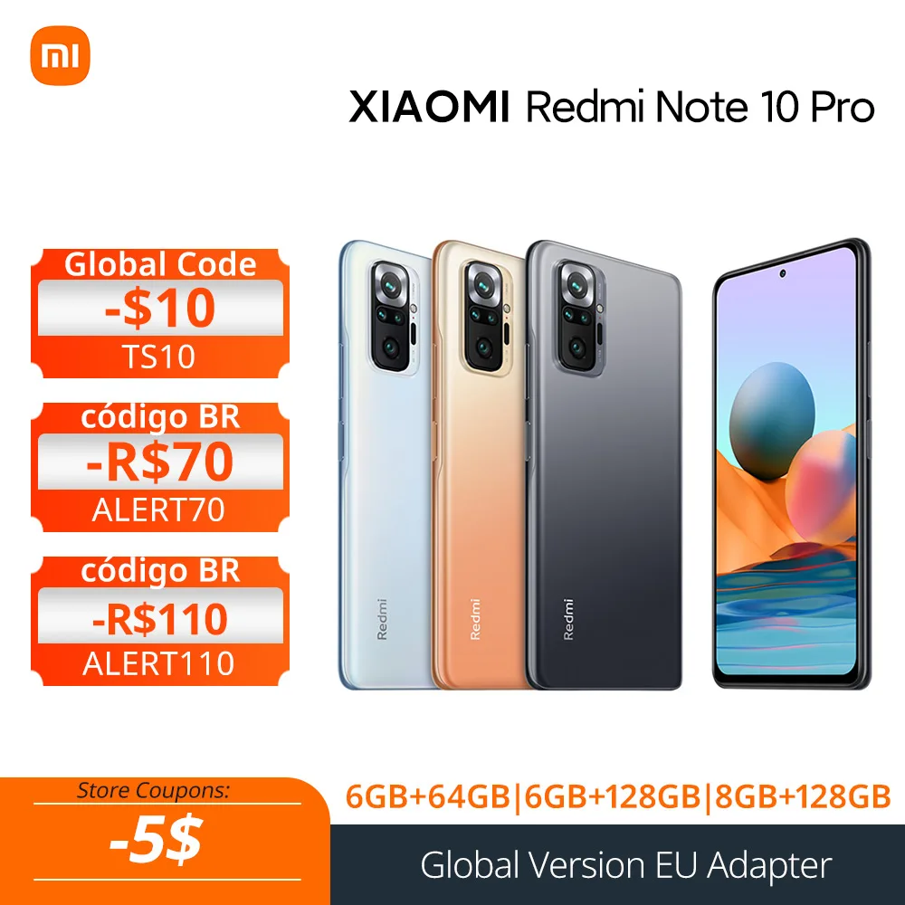 Смартфон Xiaomi Redmi Note 10 Pro глобальная версия 6 + 64128 8 + 128, камера 732 МП, Snapdragon 120G, Гц, AMOLED дисплей, NFC