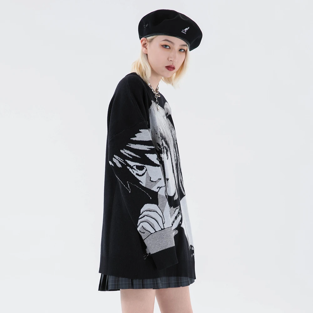 Японский мультяшный черный женский свитер с длинным рукавом Harajuk...