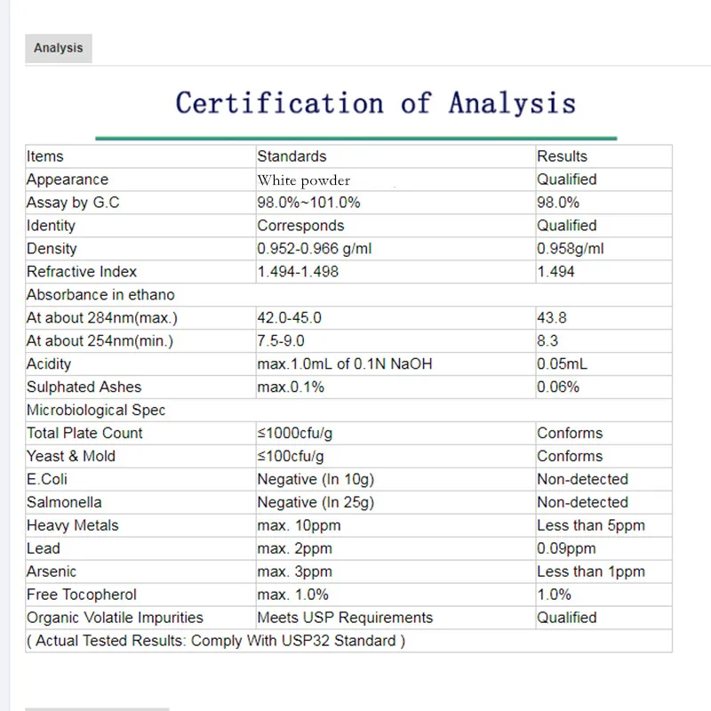 99% Витамин Е ацетат D-альфа токоферол ацетат порошок добавка Блестки для лица эластичная кожа против старения