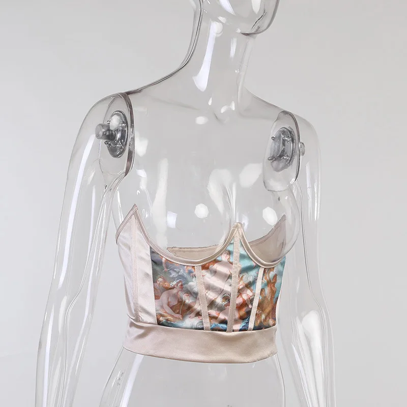 Укороченный топ-корсет с винтажным принтом, сексуальный женский лет...