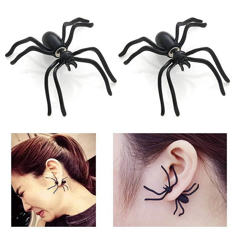 2021 Горячая Мода 1 шт 3D жуткий черный гвоздик в виде паука серьги Лидер продаж богини Уникальный Панк серьги подарок на Хэллоуин