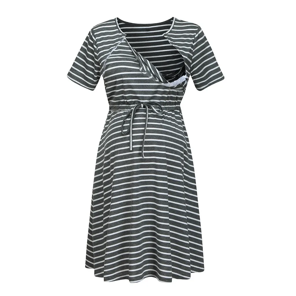Женское платье для беременных с коротким рукавом, полосатая ночная рубашка для кормления грудью, платье для беременных, Одежда для беременных