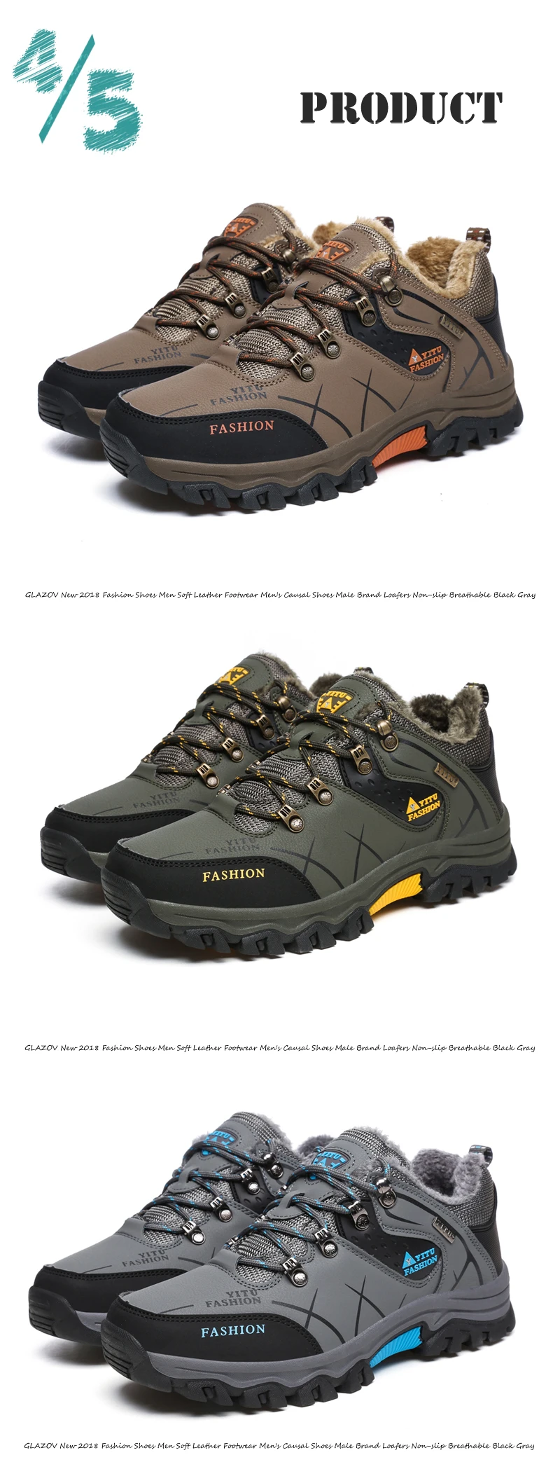 Мужские зимние теплые ботинки, высококачественные кожаные кроссовки...