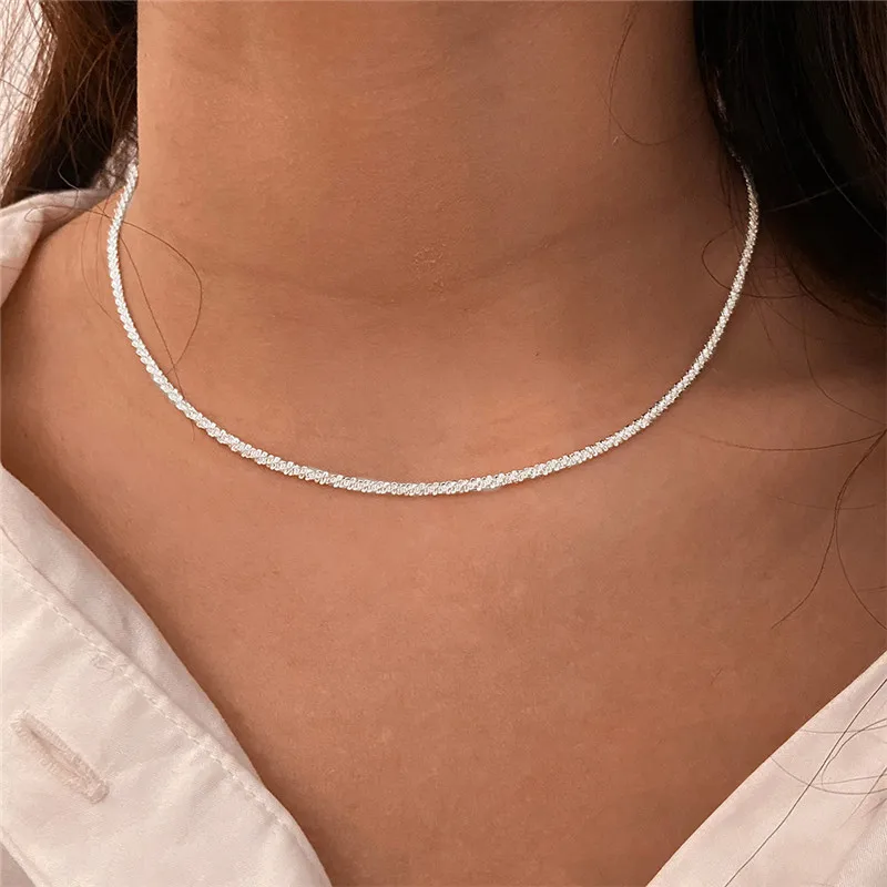 2022 тренд, сверкающее серебряное ожерелье-чокер для женщин, элегантная цепочка для ключицы, ожерелье, вечерние, свадебные воротнички, ювелирные изделия, подарки