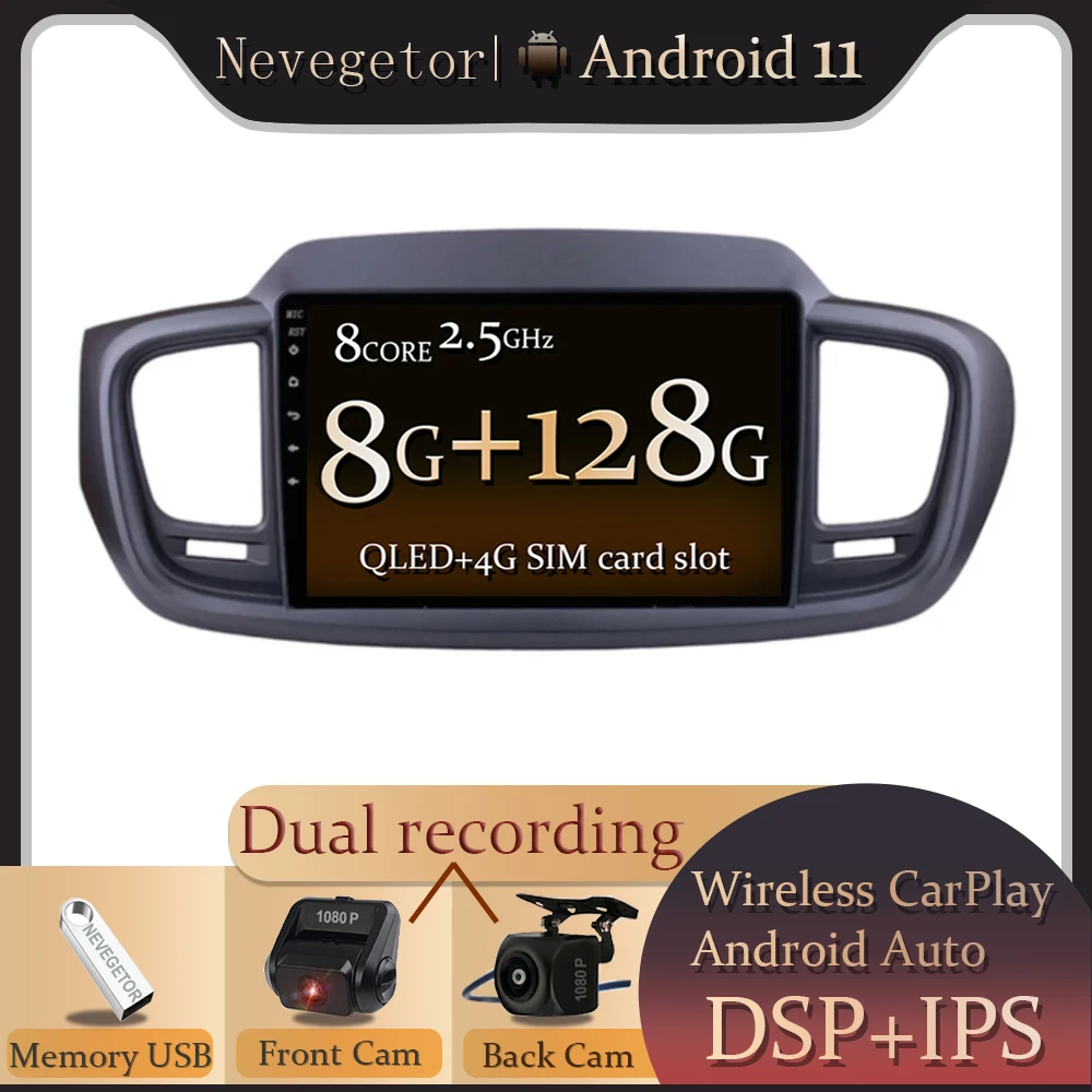 Автомагнитола 8 ГБ + 128 ГБ, Android 11,0 для Kia Sorento 3 2014-2017, мультимедийный видеоплеер, навигация GPS, 2 din, dvd