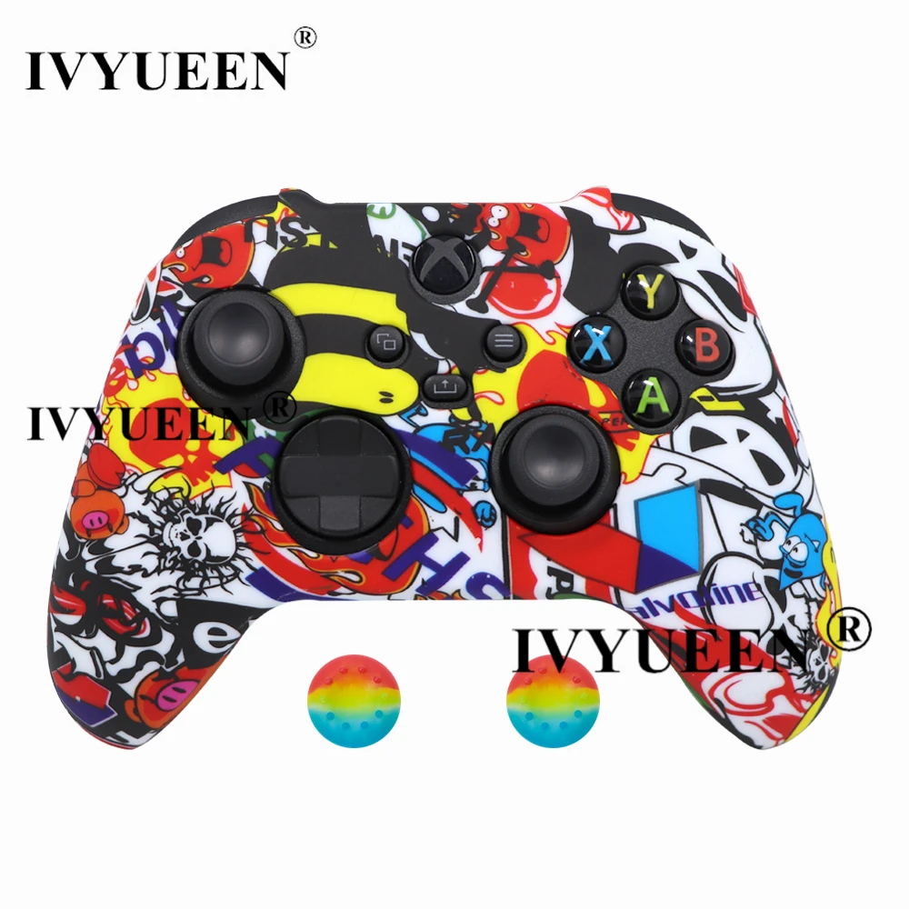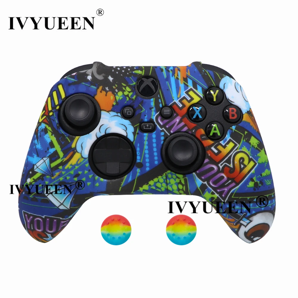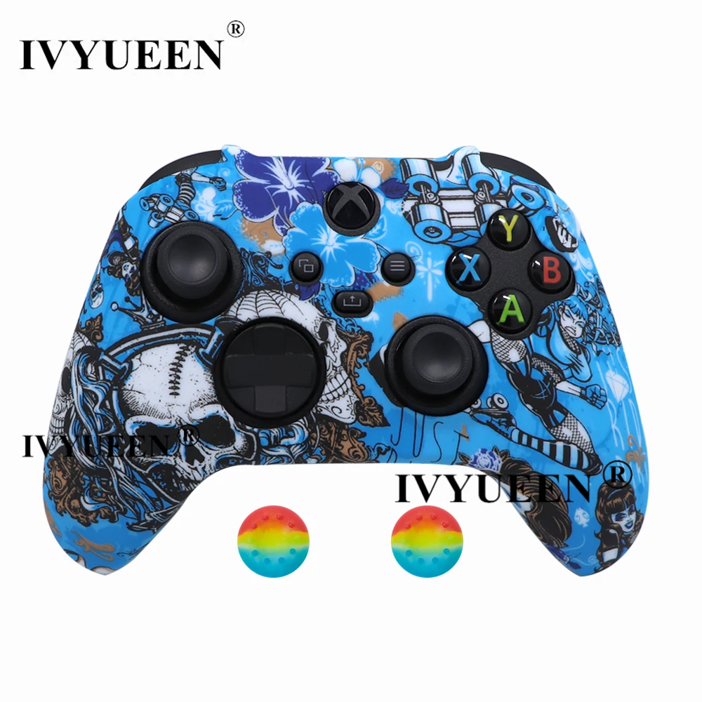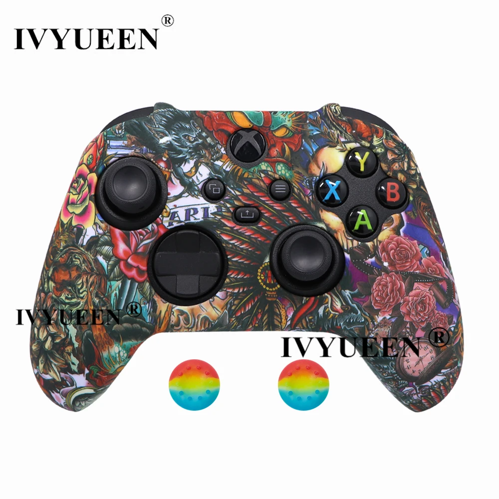IVYUEEN для XBox серии S X Беспроводной контроллер вода трансферная печать защитный силиконовый чехол кожаный чехол с Стик ручка шапки