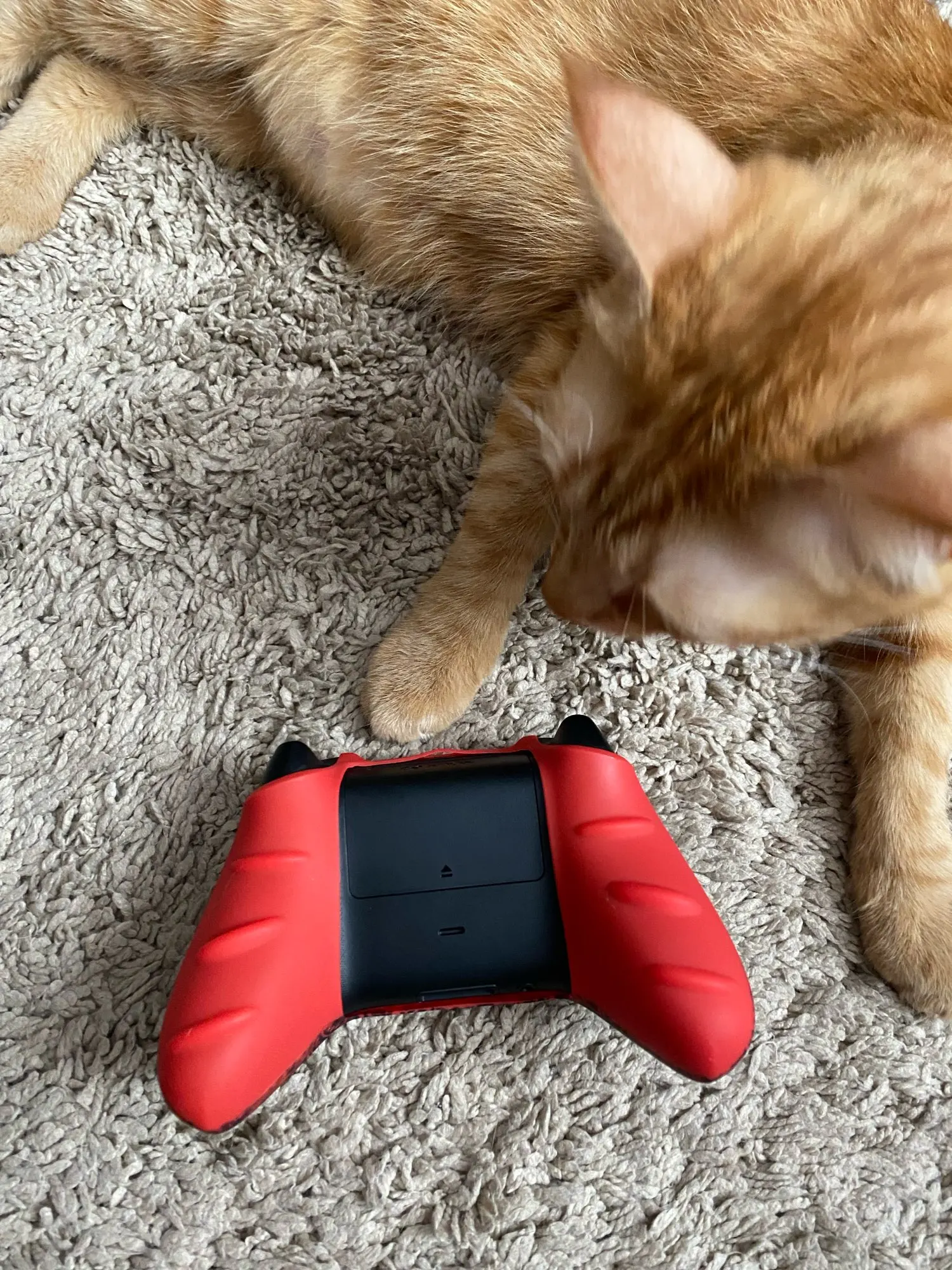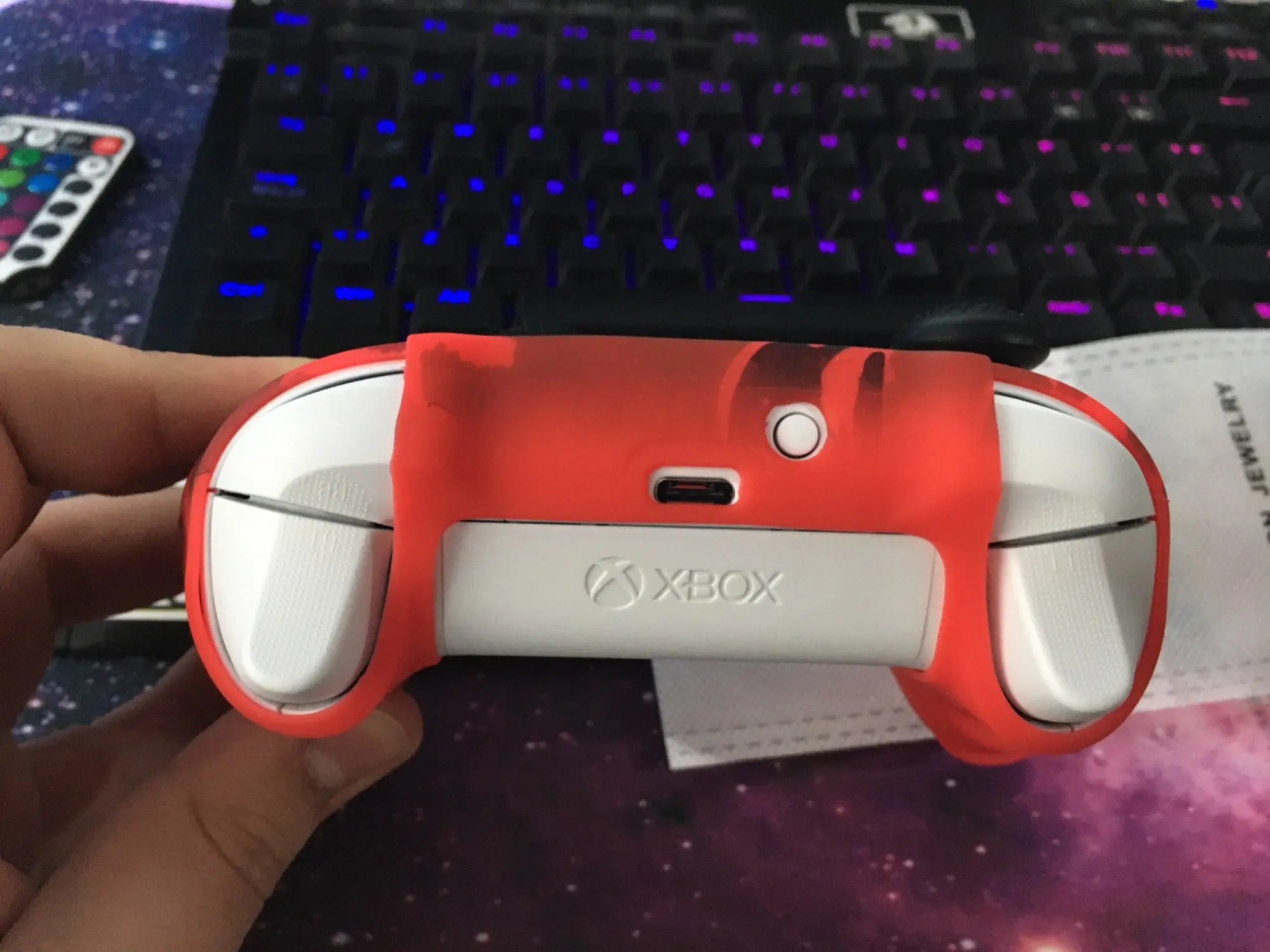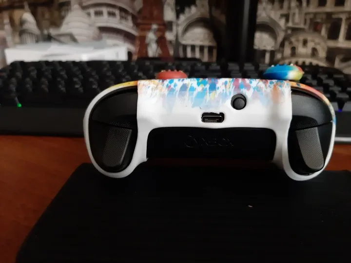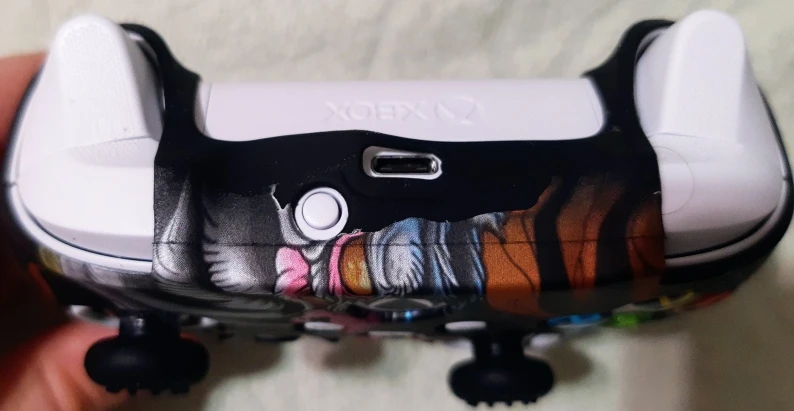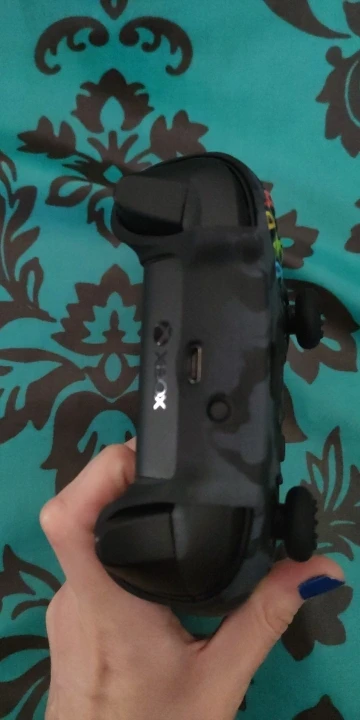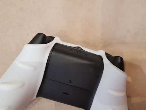 Немного болтается. а так прикольный на ощупь материал. Геймпад за счёт него увеличился в объеме как раз под большие руки стал.