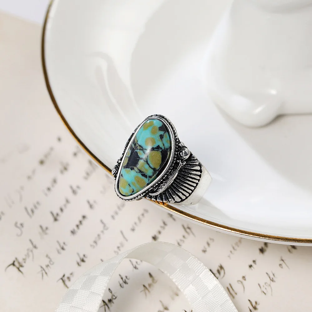Винтажные антикварные серебряные кольца для мужчин и женщин, перстни средней длины с овальным голубым камнем в форме крыла ангела, ювелирные изделия в стиле бохо