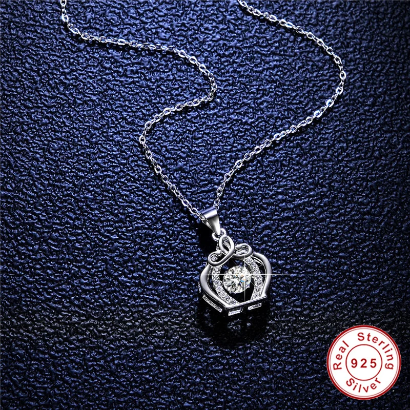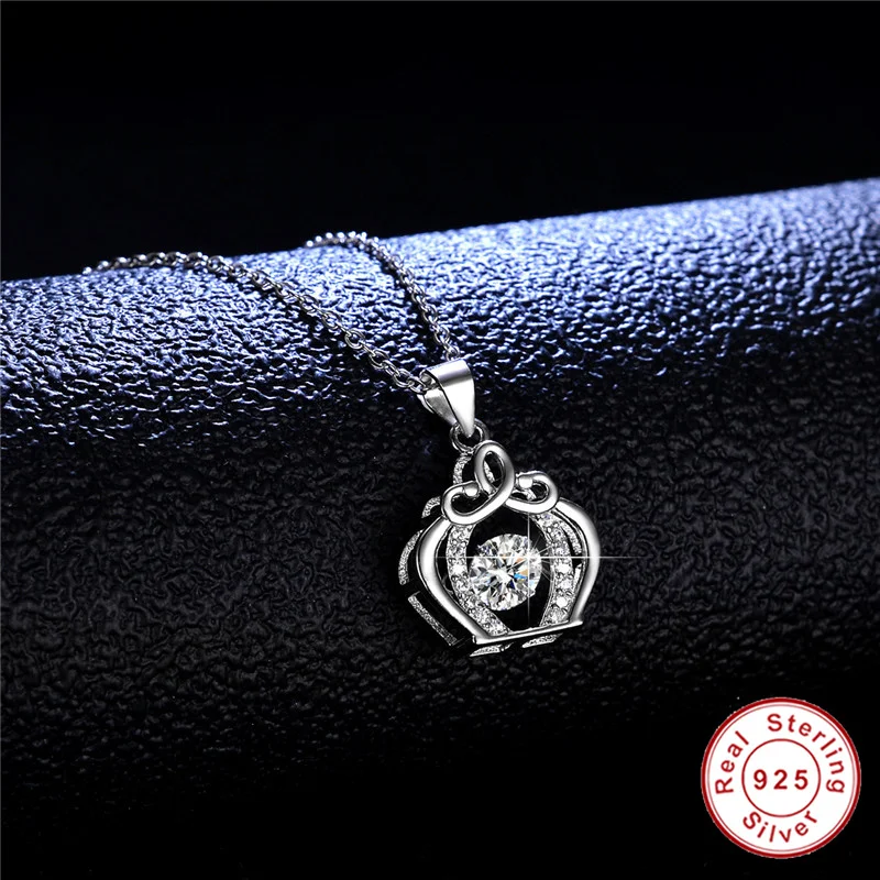 Geoki 925 стерлингового серебра 0,5 ct идеальный крой D Цвет VVS1 Муассанит ожерелье с подвеской с изображением короны, Роскошные вечерние цепи для девочек-подростков