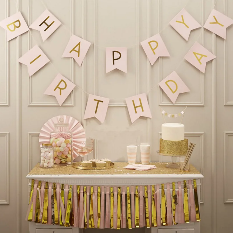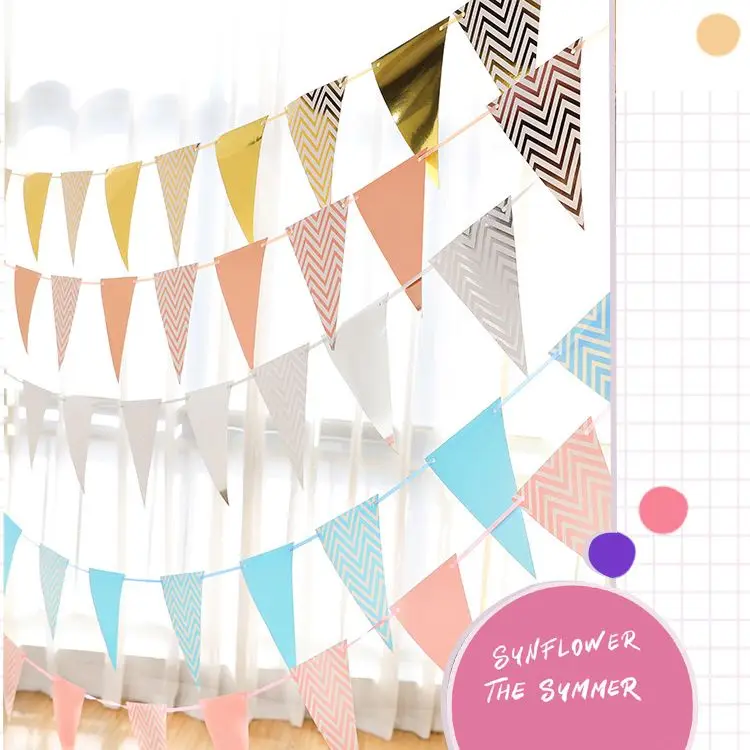 5 м 12 флагов, золотая, розовая, серебряная Бумажная гирлянда, банн...